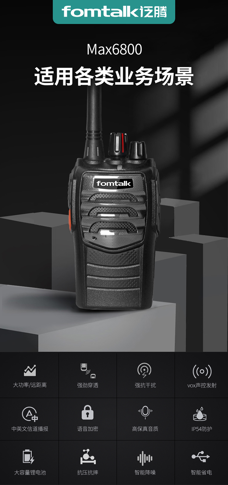 商品名称:泛腾 Max6800 对讲机 国产全自主 大功率远距离超长待机 民用商用专业无线手台