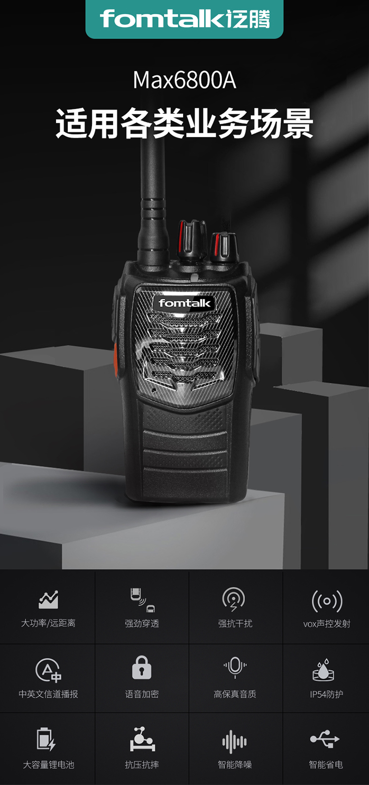 商品名称:泛腾 Max6800A 对讲机 国产全自主 大功率远距离超长待机 民用商用专业无线手台