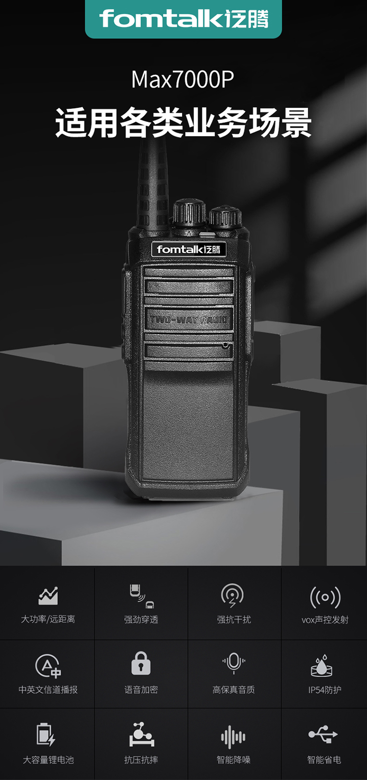 商品名称:泛腾 Max7000P 对讲机 国产全自主 远距离 抗干扰 350MHz对讲机