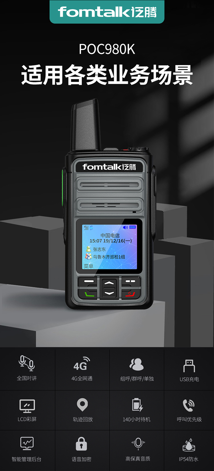 商品名称:泛腾 POC980K 公网对讲机 国产全自主 全国通5000公里不限距离