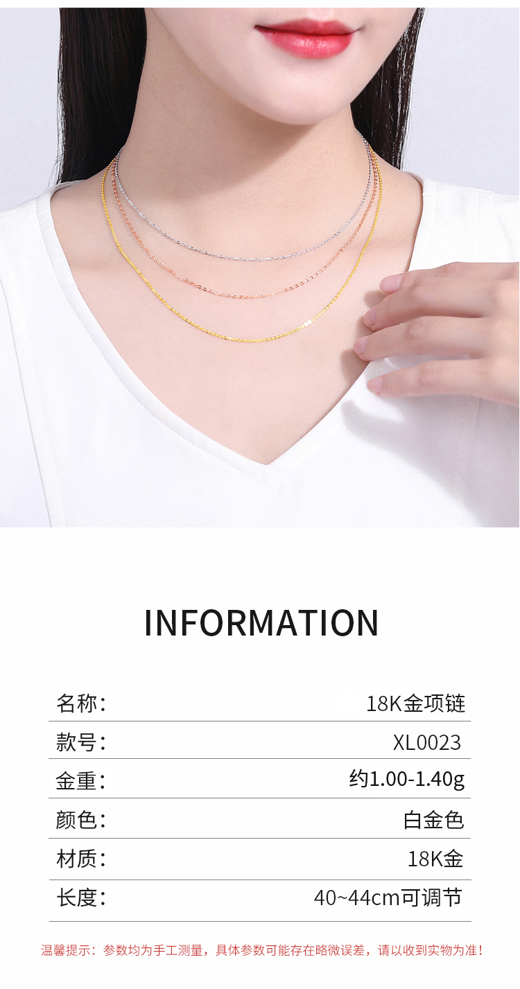 商品名称:GZUAN古钻珠宝 白18k金素金女士时尚百搭项链 O字链 1.2克XL0023(单位:件) 银色