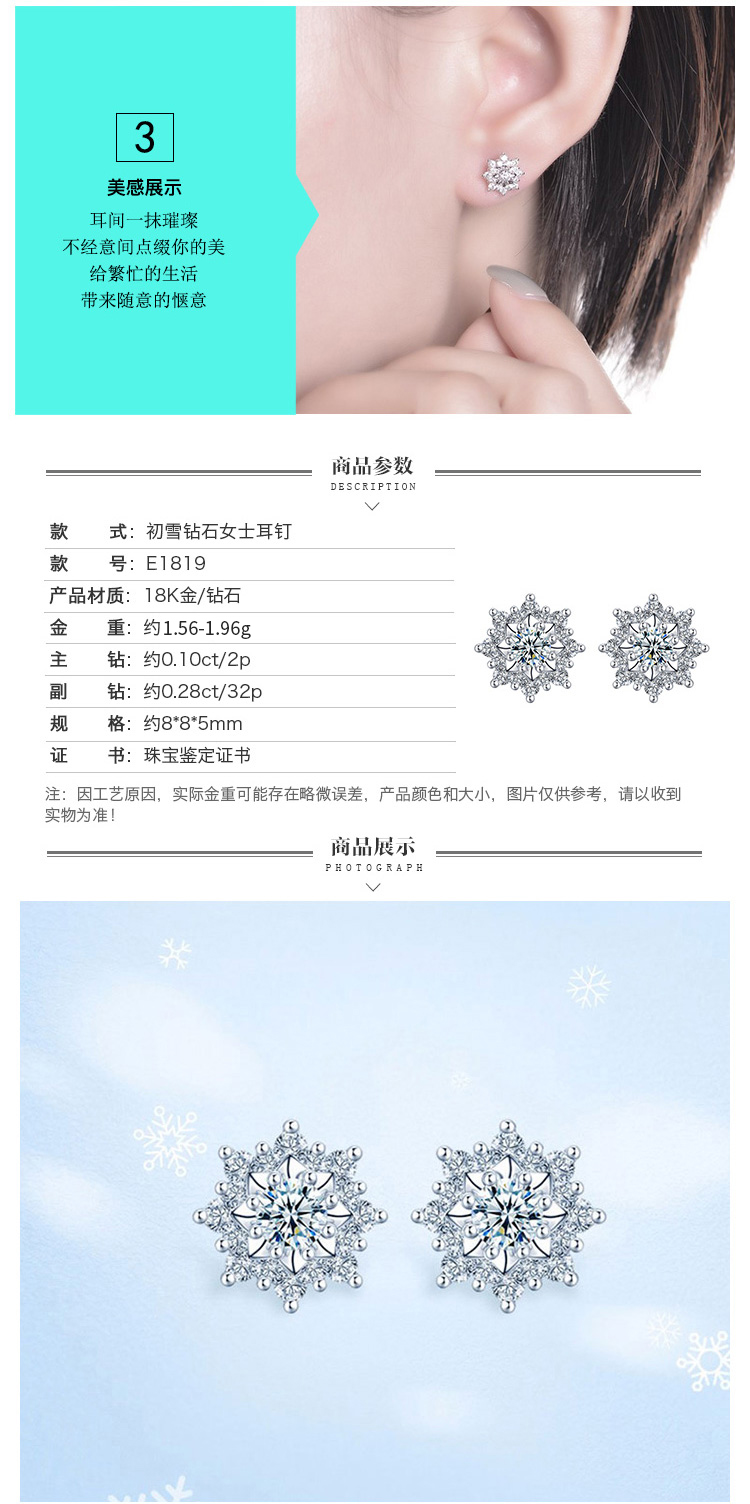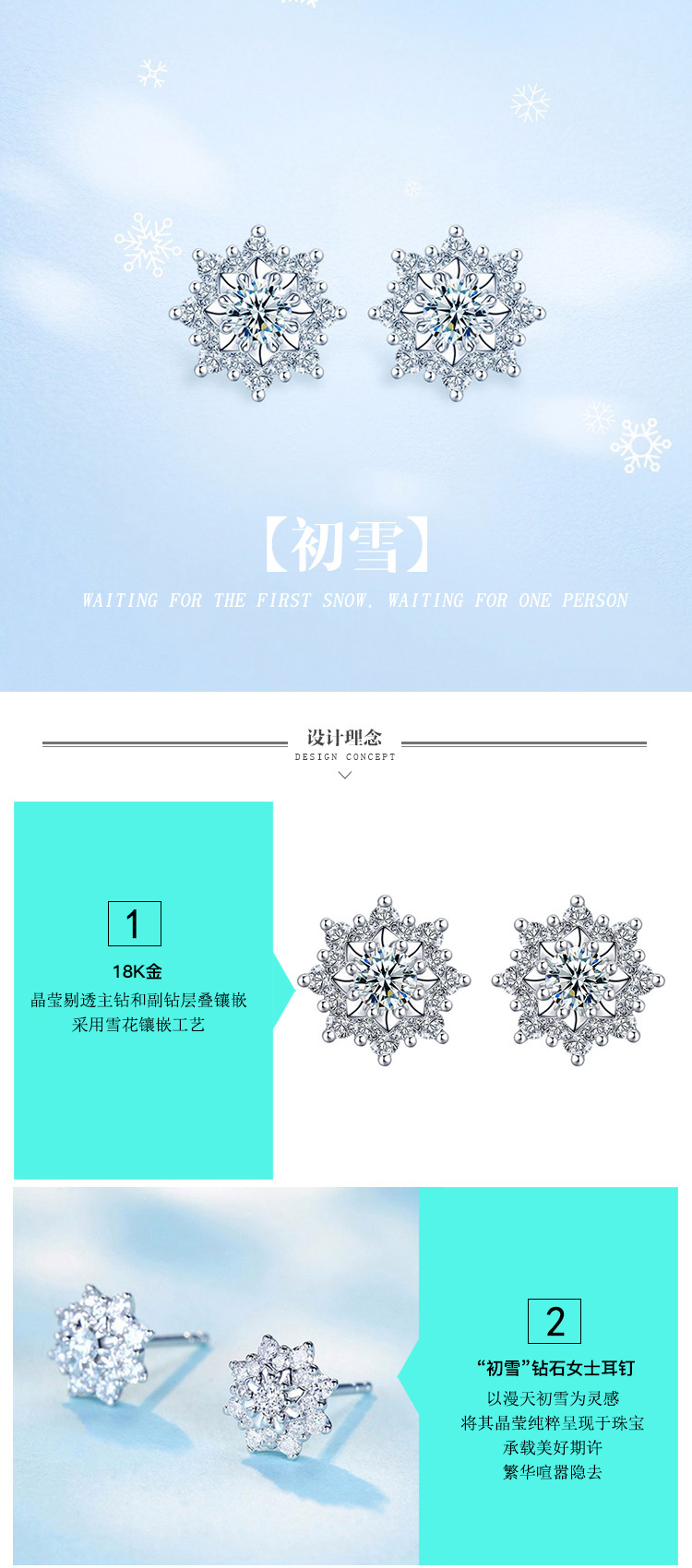 商品名称:GZUAN古钻珠宝 初雪 18K金钻石女士耳钉耳环 E1819(单位:件) 银色