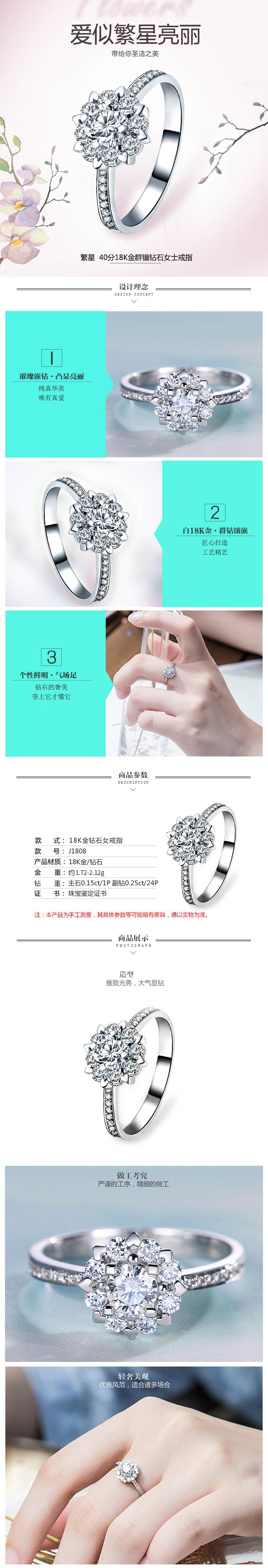 商品名称:GZUAN古钻珠宝 繁星 40分18K金群镶钻石戒指女士结婚/求婚戒指J1808(单位:件) J1808-11