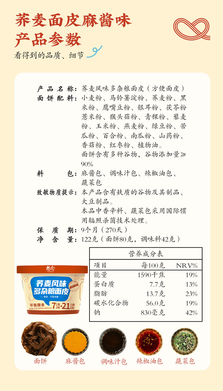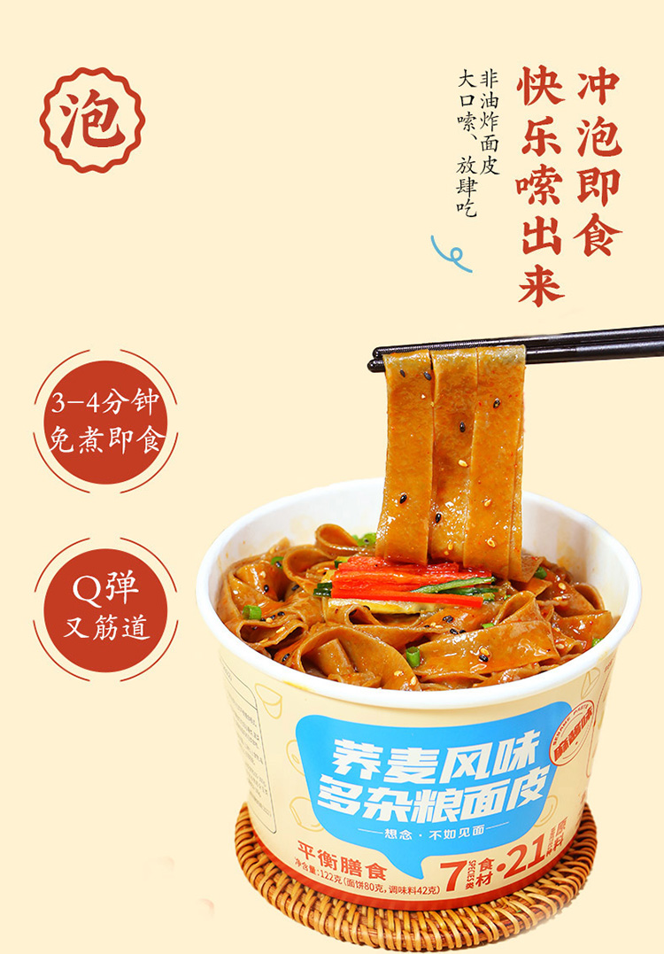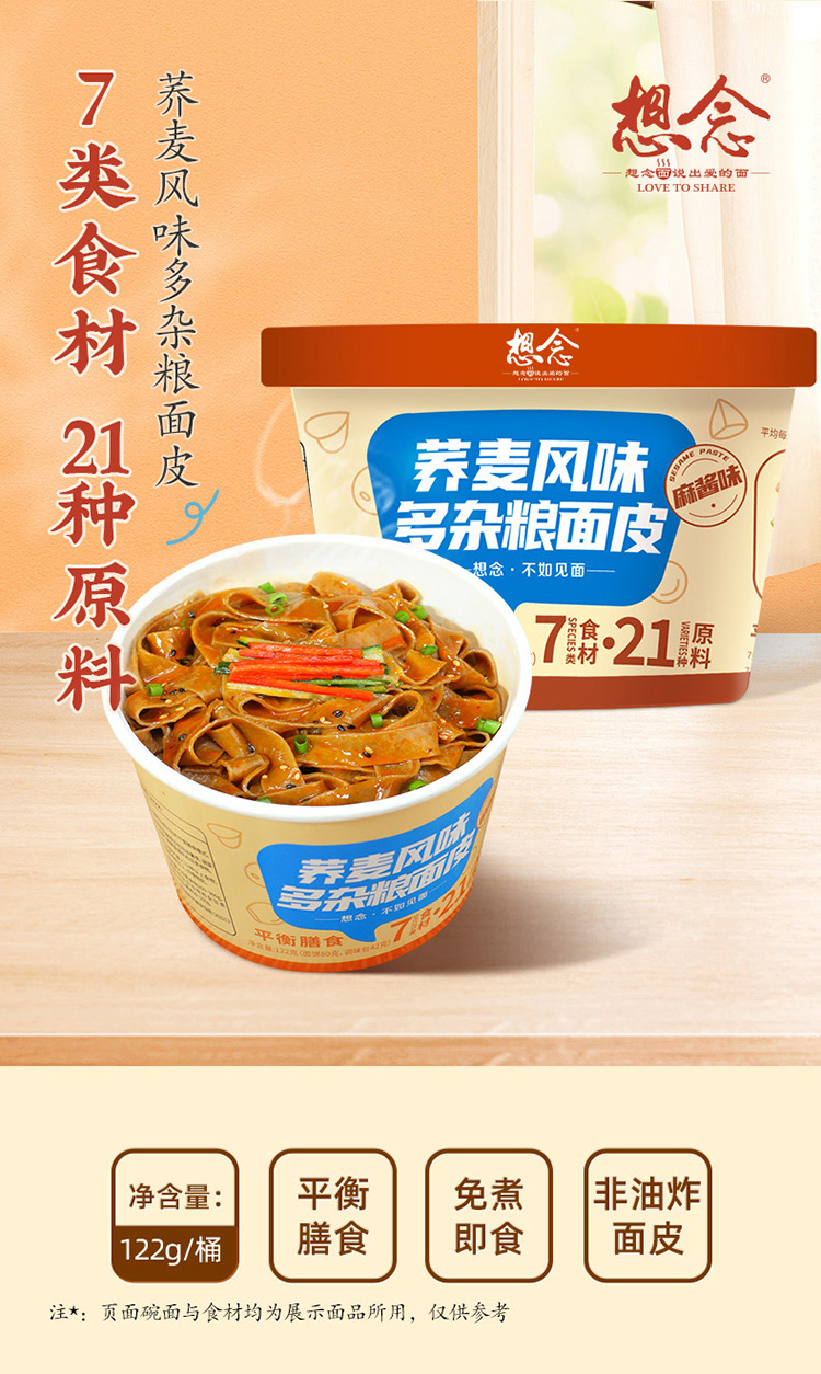 商品名称:想念桶装荞麦风味多杂粮面皮(麻酱)122g*6桶 宝石蓝
