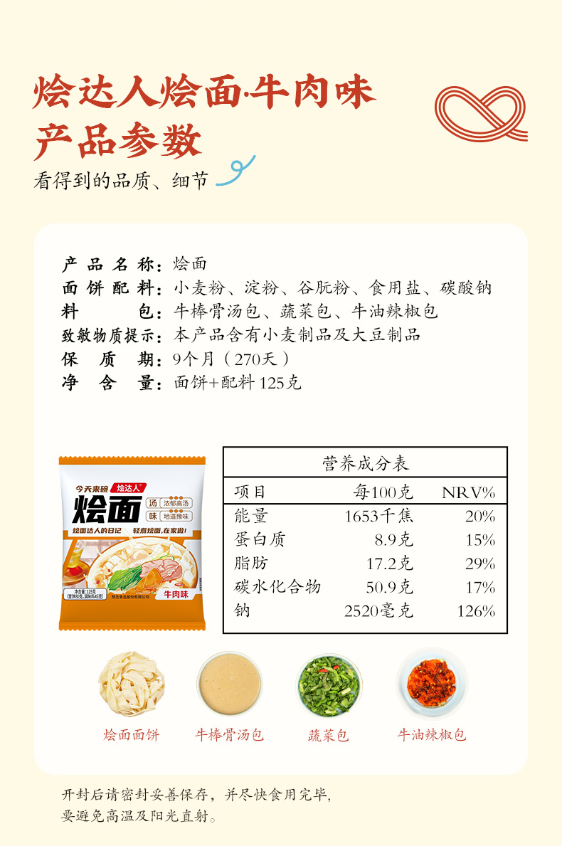 商品名称:想念烩达人牛肉味125g*10袋 灰橙色