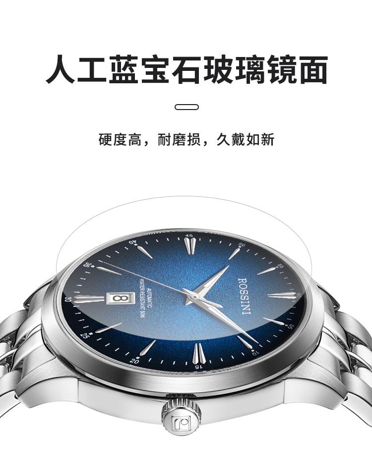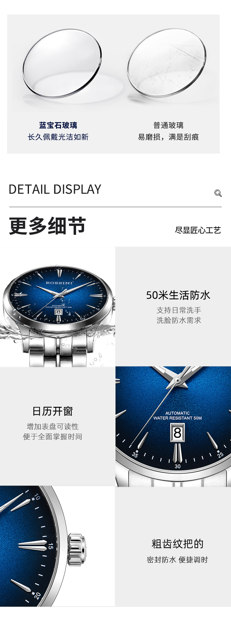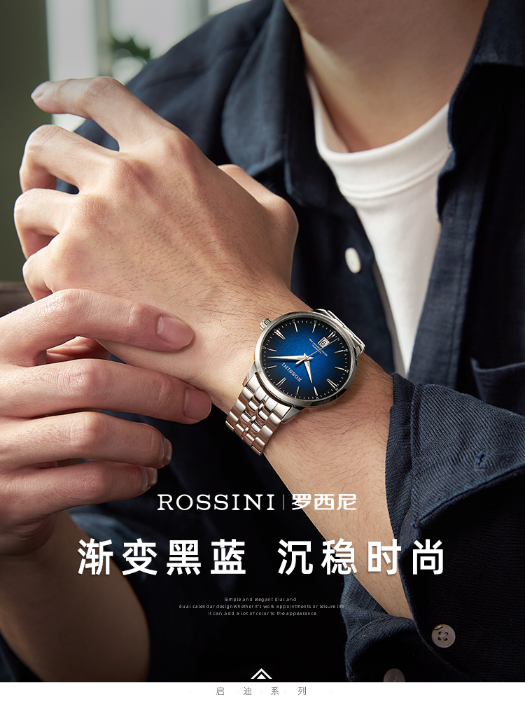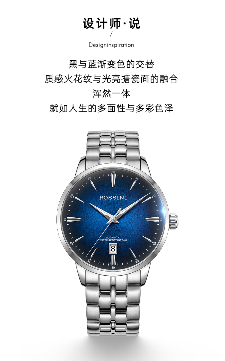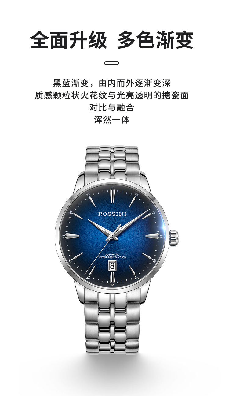 商品名称:Rossini罗西尼 启迪系列 机械手表渐变蓝盘男表50127W05C(赠皮带)(单位:块) 蓝色