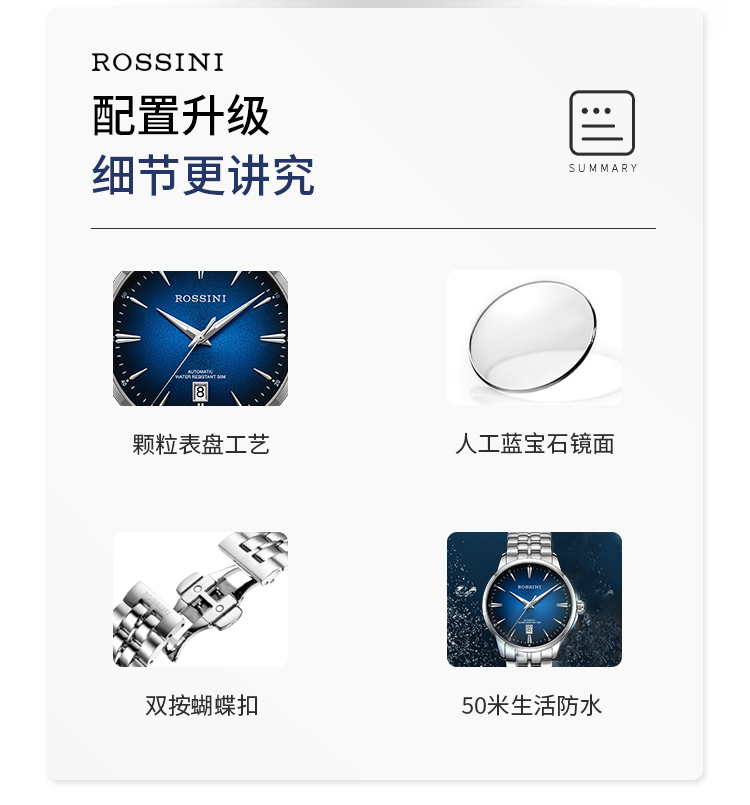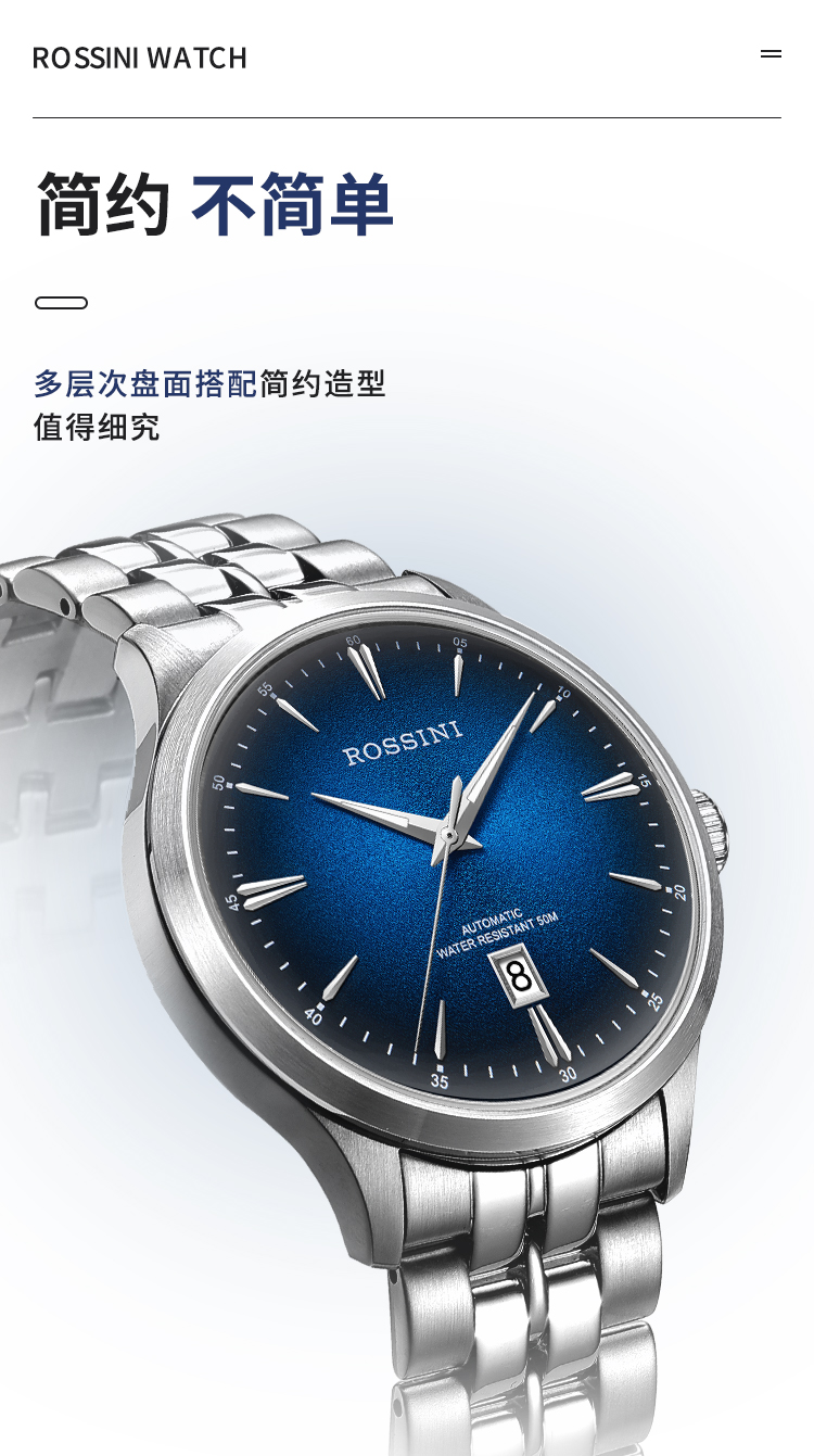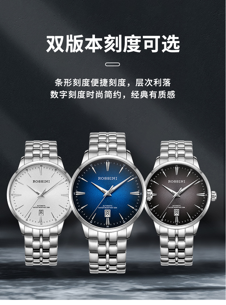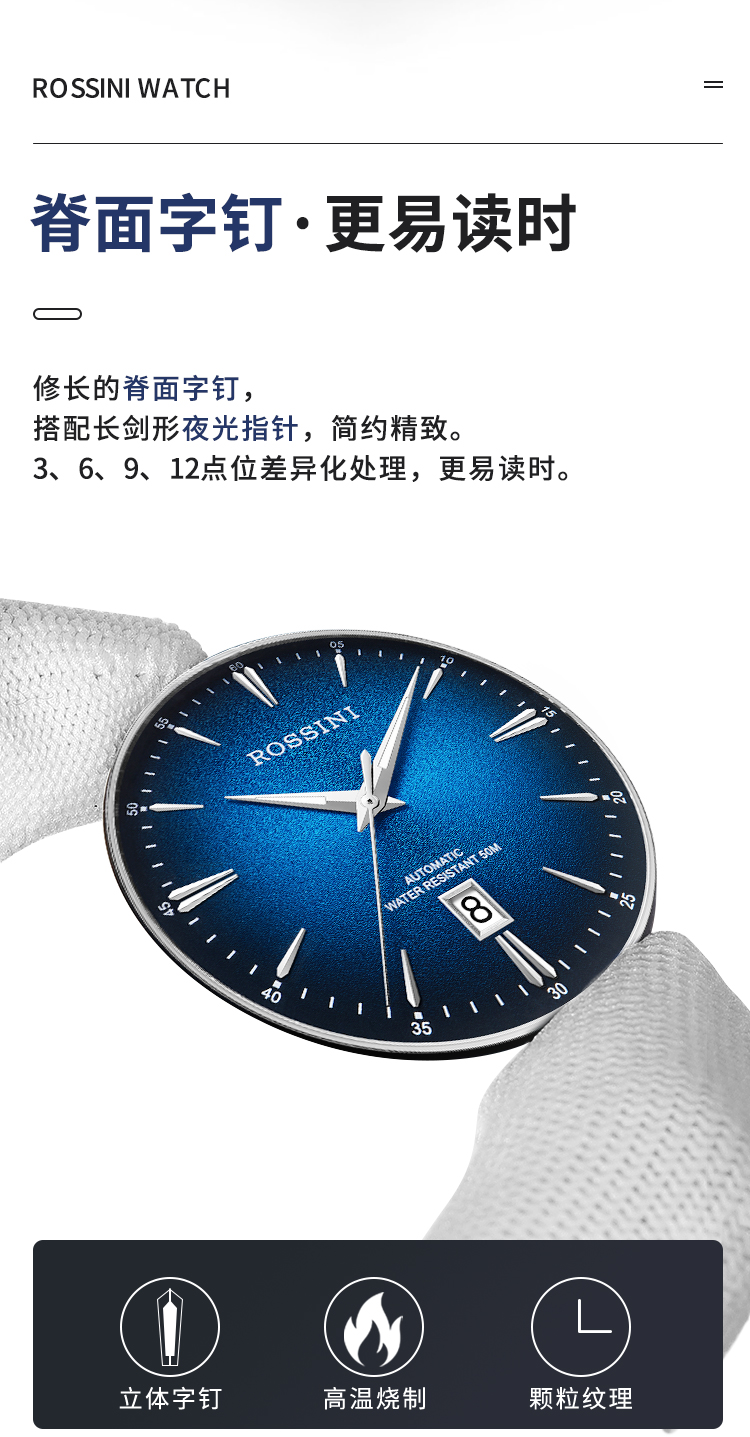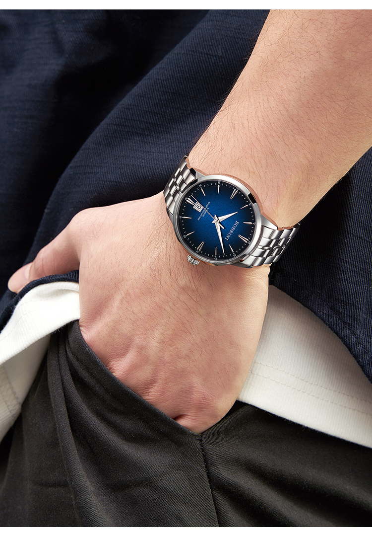 商品名称:Rossini罗西尼 启迪系列 机械手表渐变蓝盘男表50127W05C(赠皮带)(单位:块) 蓝色
