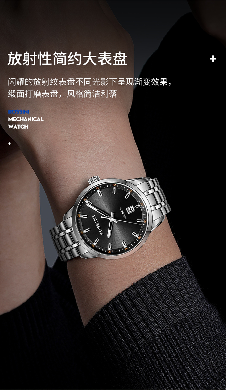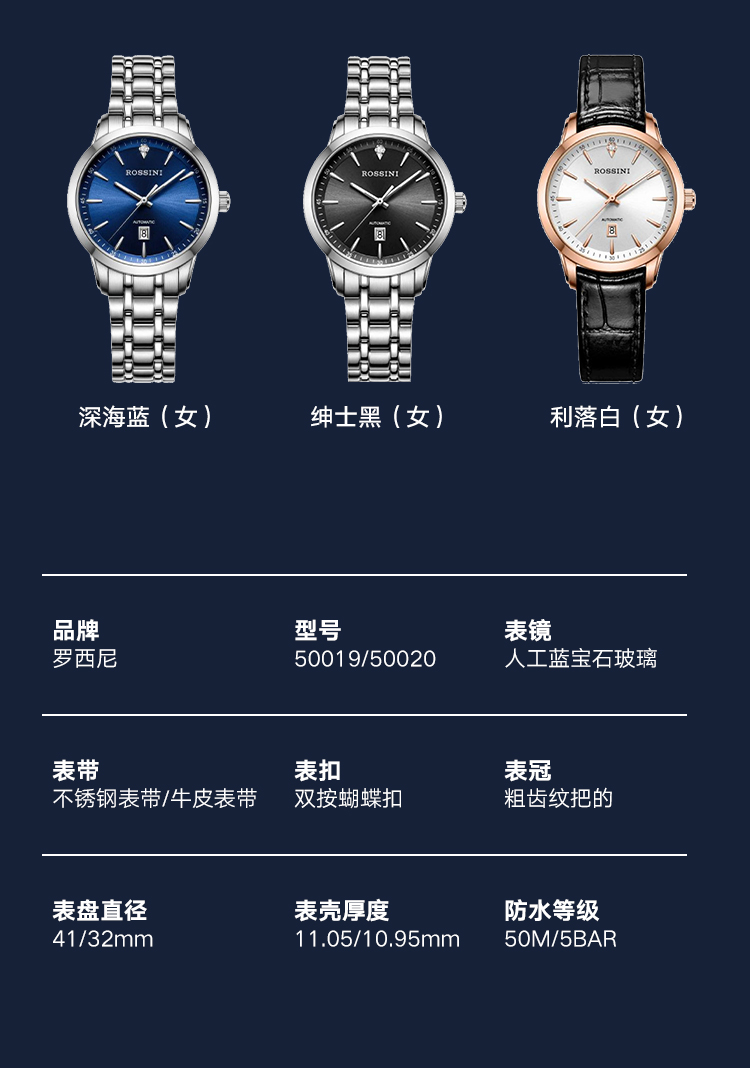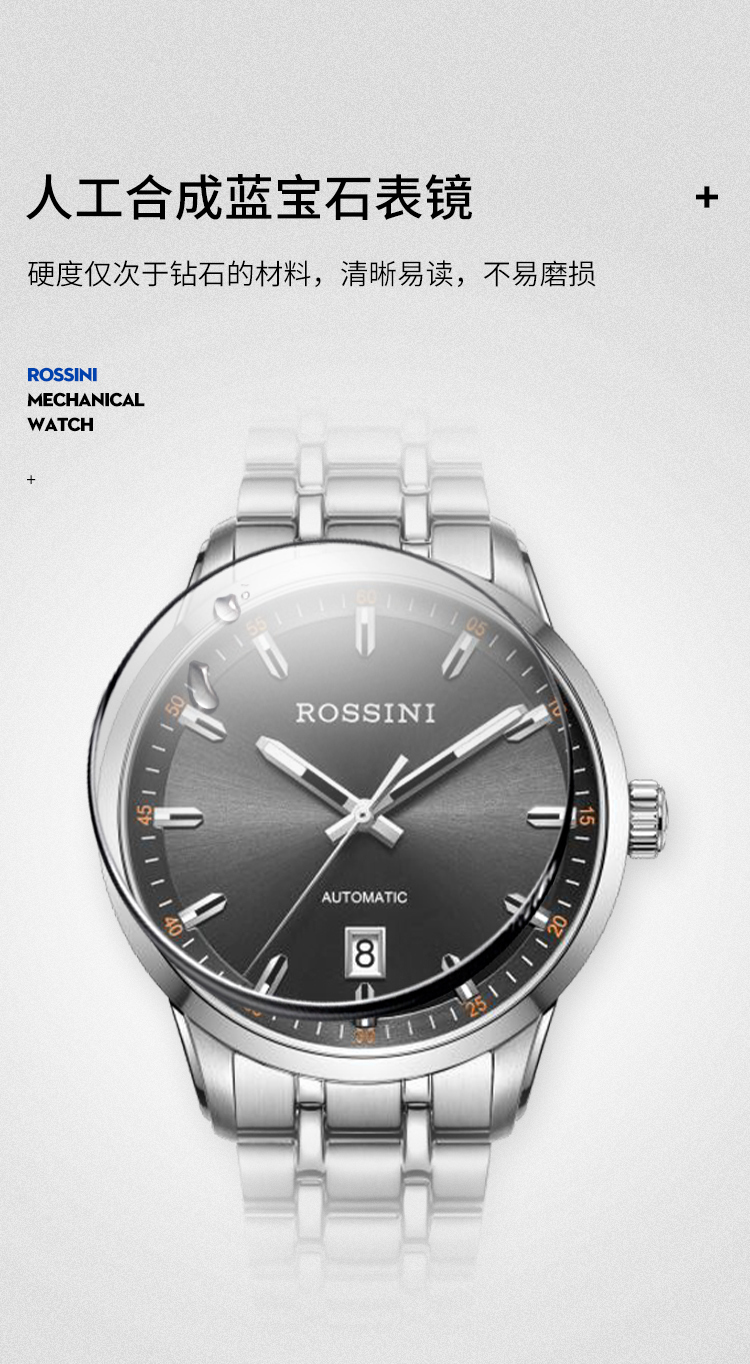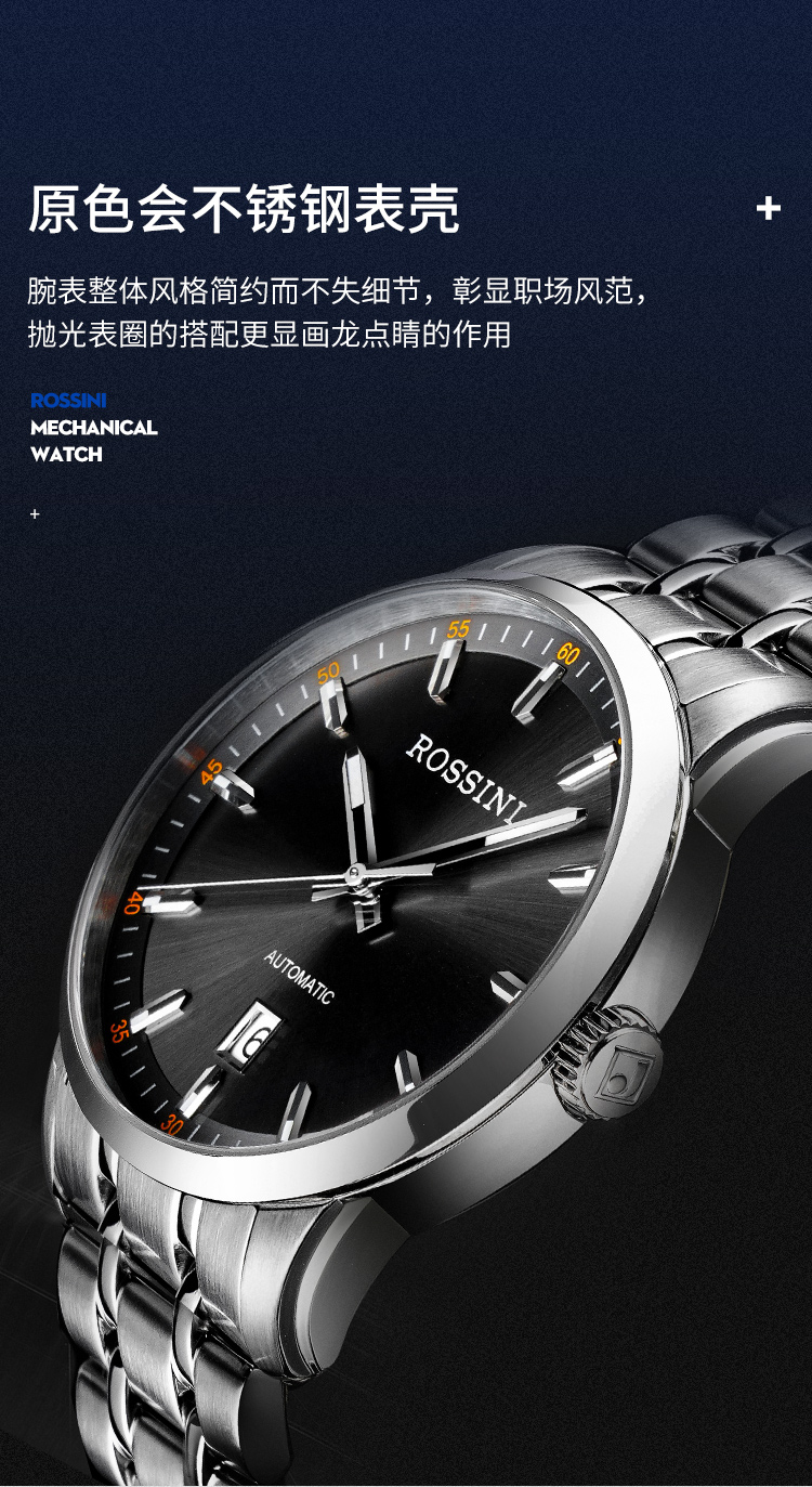 商品名称:Rossini罗西尼 启迪系列 机械手表商务休闲时尚情侣款白盘皮带男表50019G01C(单位:块) 白色