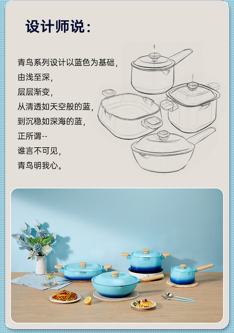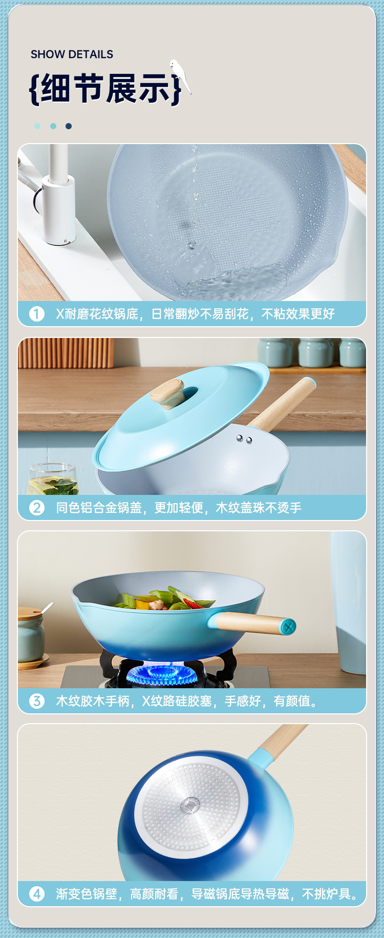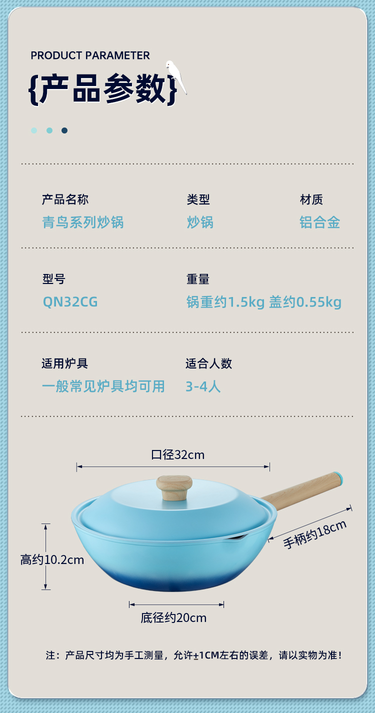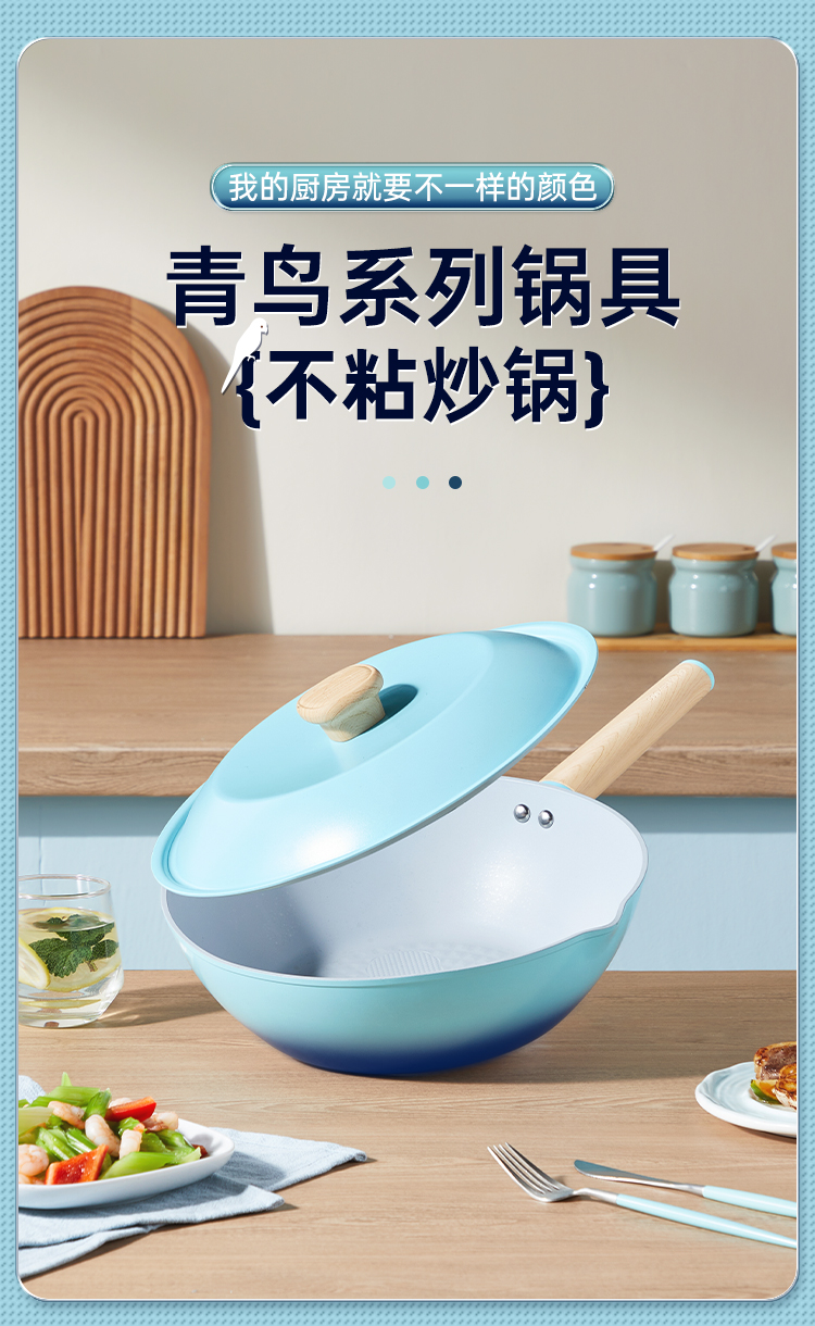 商品名称:炊大皇青鸟炒锅32cmQN32CG(单位:个) 天蓝色