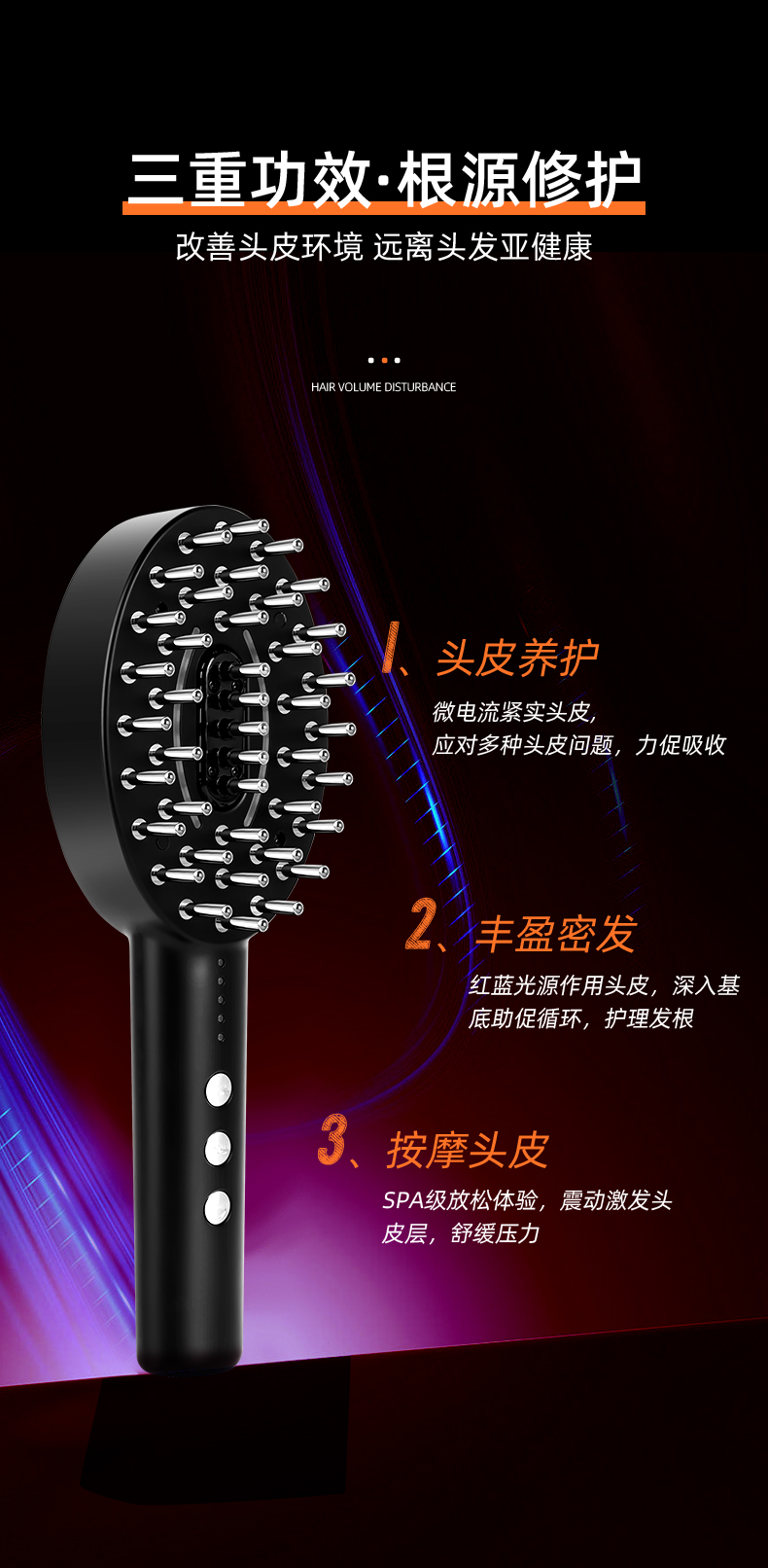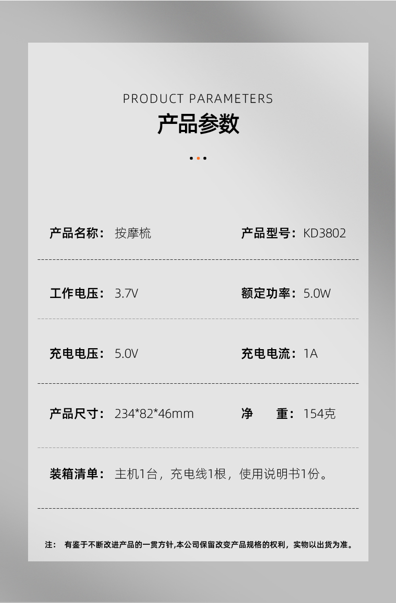 商品名称:金稻 (KINGDOM) 按摩梳KD3802(单位:台) 黑色