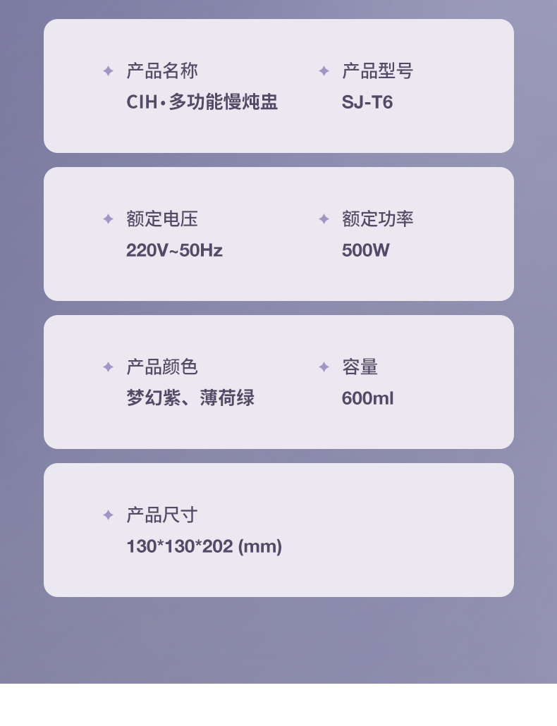 商品名称:CIH小型迷你宝宝家用便携炖盅(SJ-T6)(单位:个) 绿色