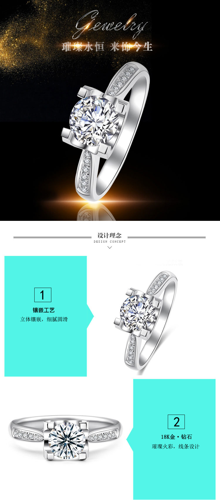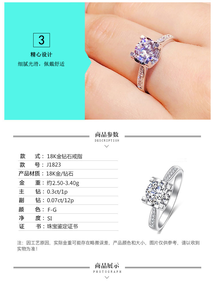 商品名称:GZUAN古钻珠宝 18K金钻石女士戒指 J1823 13#