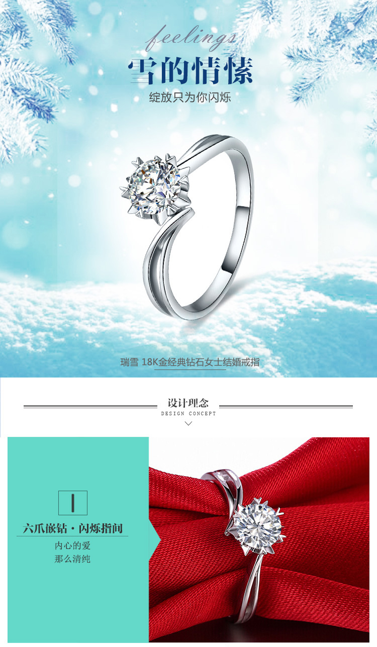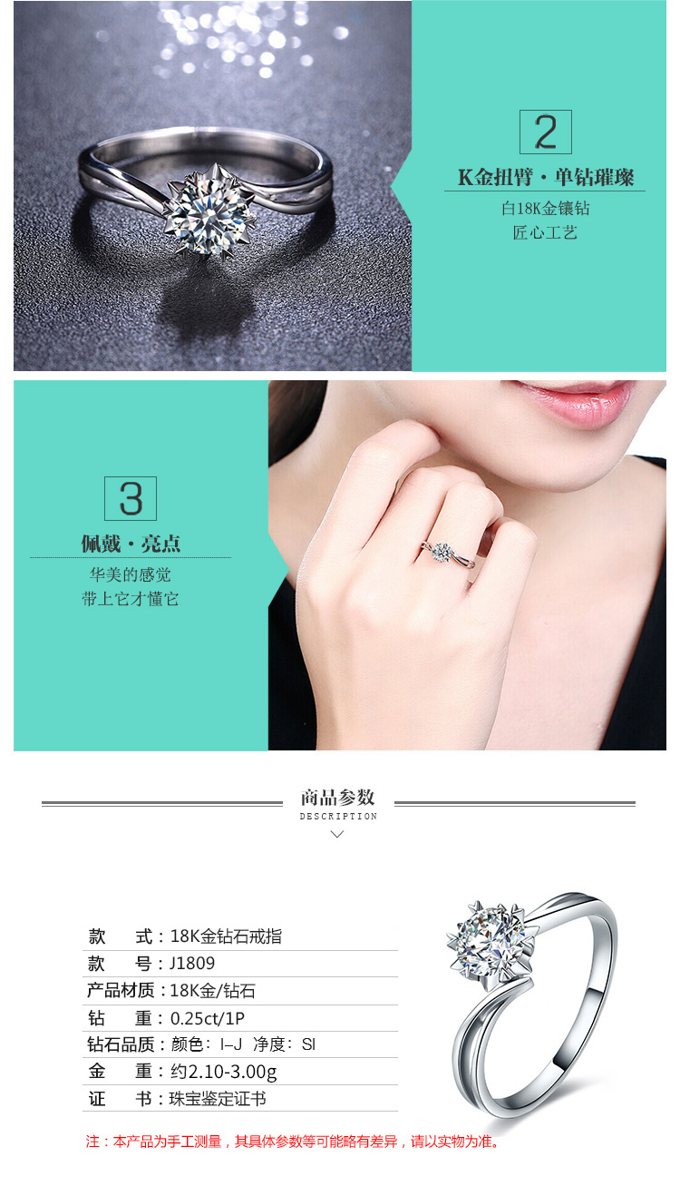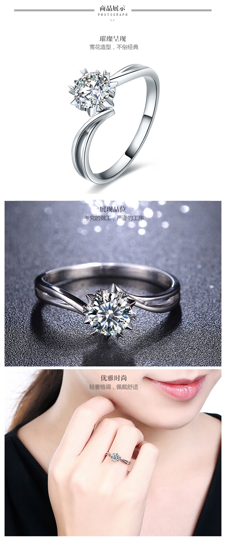 商品名称:GZUAN古钻珠宝 瑞雪 18K金经典钻石戒指女士结婚求婚戒指 J1809(单位:件) 10#
