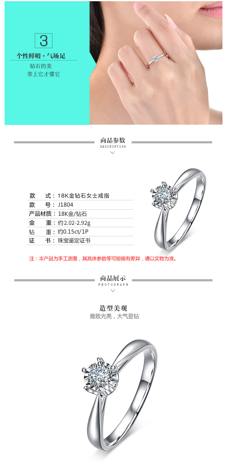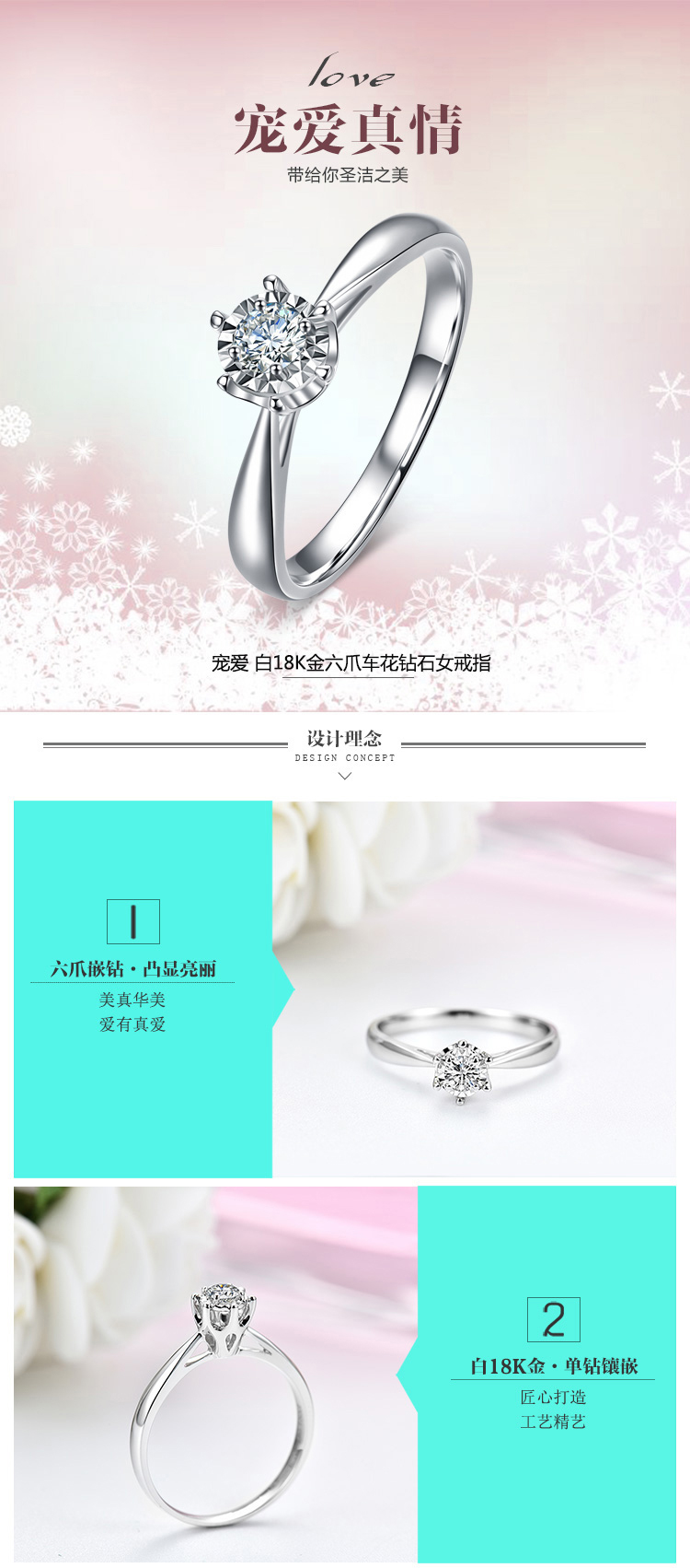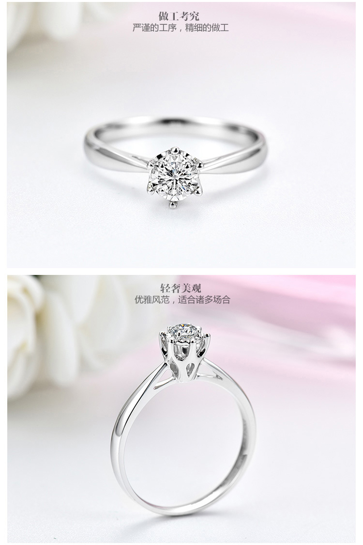 商品名称:GZUAN古钻珠宝 18K金经典六爪车花片显钻钻石戒指女士结婚求婚戒指 J1804(单位:件) 9#