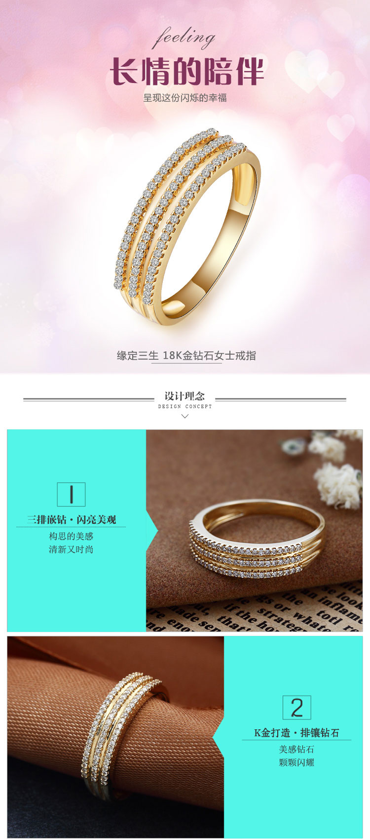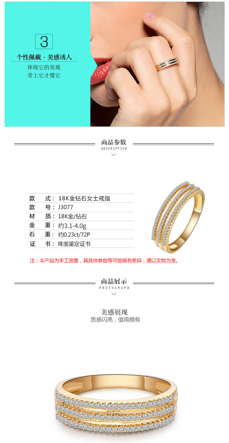 商品名称:GZUAN古钻珠宝 缘定三生 23分18K金钻石女士结婚/求婚戒指 J3077(单位:件) 11#