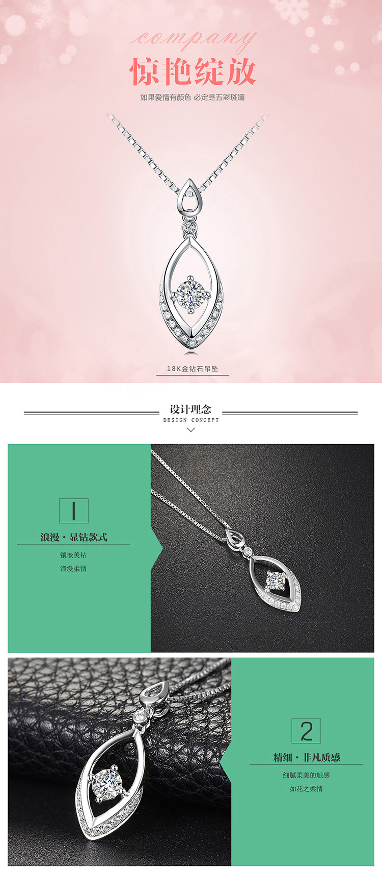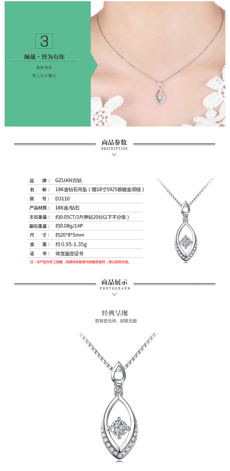 商品名称:GZUAN古钻珠宝 月眸 18K金钻石女士吊坠(赠S925银项链) D3110(单位:件) 银色