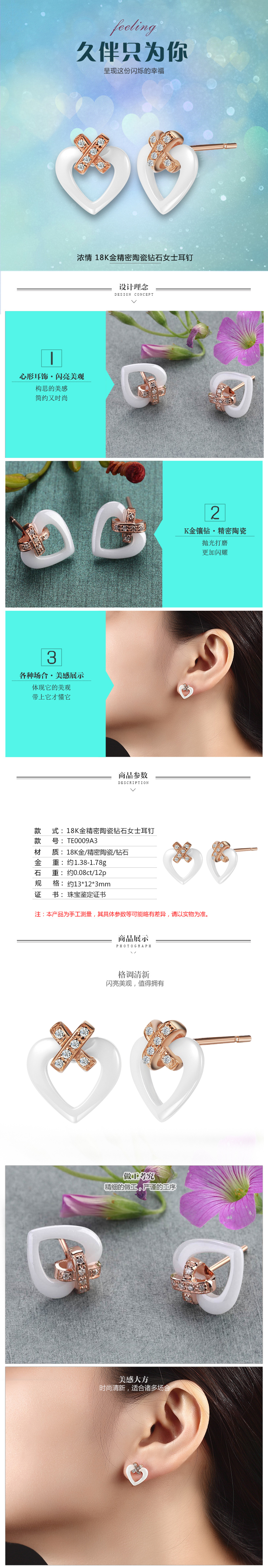 商品名称:GZUAN古钻珠宝 浓情 18K金精密陶瓷钻石女士耳钉/耳饰 TE0009A3(单位:件) 白色