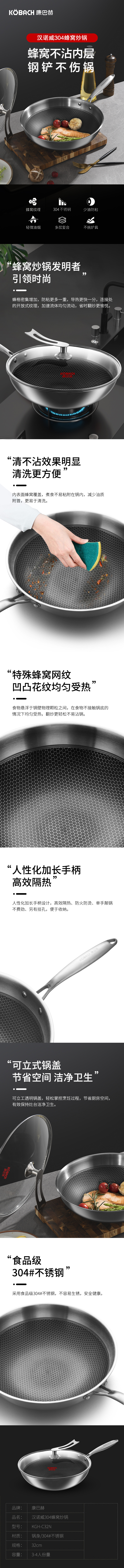 商品名称:康巴赫-汉诺威304蜂窝炒锅 KGH-C32N(单位:套) 银色