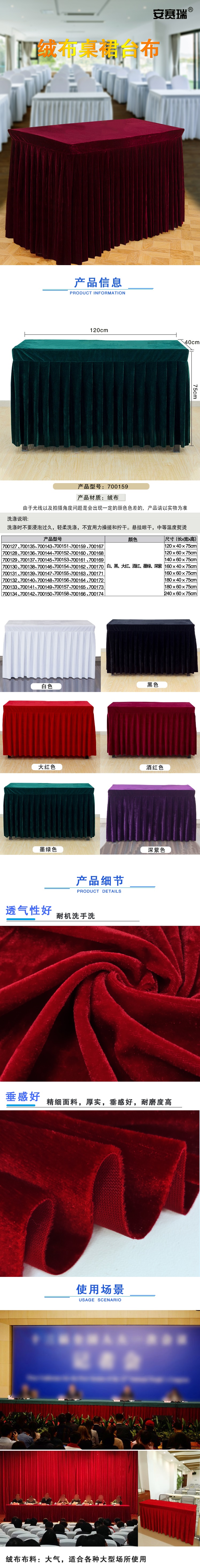 商品名称:安赛瑞 绒布桌裙台布 加厚金丝绒会议桌布 160×60×75cm 婚庆签到台展示台 办公展厅桌裙套 700147 个 红色