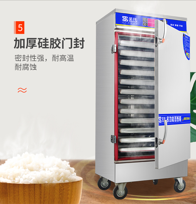 商品名称:圣托(Shentop)蒸饭柜商用全自动 智能多功能饭店电蒸箱 8盘单门食堂蒸饭车 STZ-D08(单位:台) 不锈钢色