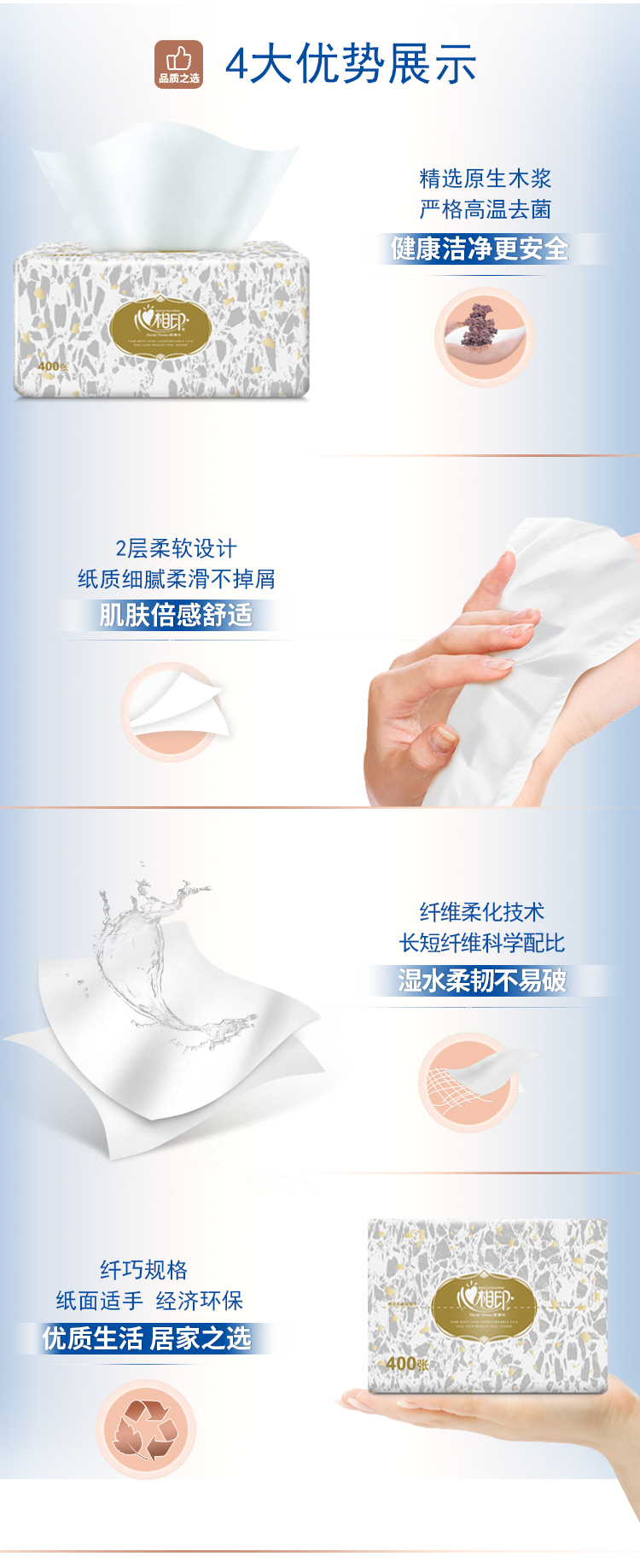 商品名称:心相印(Mind Act Upon Mind) 商用恒金塑装纸面巾RDT200(60包)(单位:箱)白色