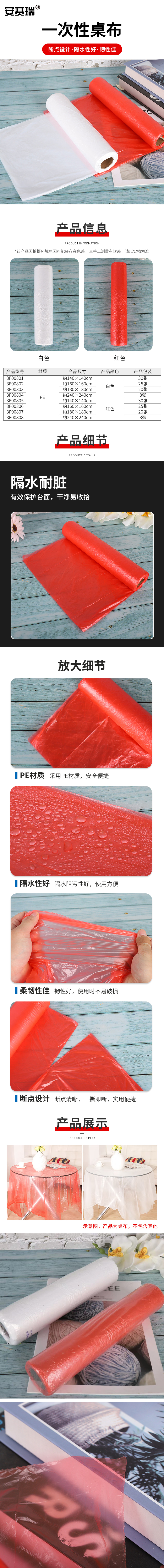 商品名称:安赛瑞 一次性桌布 饭店酒席餐桌隔脏台布 白色20张装 约180x180cm 3F00803 个 无色