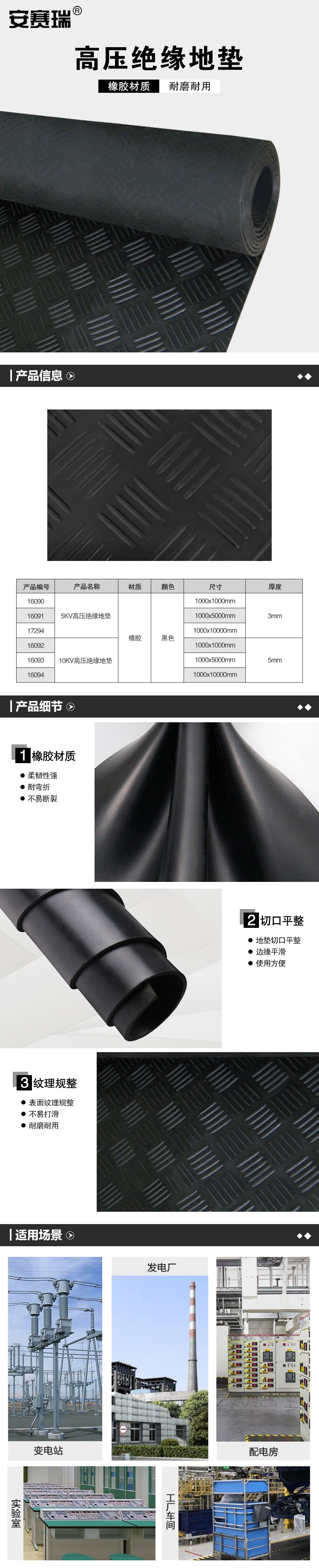 商品名称:安赛瑞 10KV高压绝缘地垫(1×10m)配电房安全地毯垫 5mm绝缘地垫黑色五杠 16094 个 曜石黑