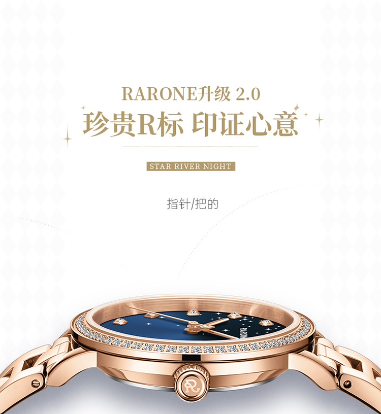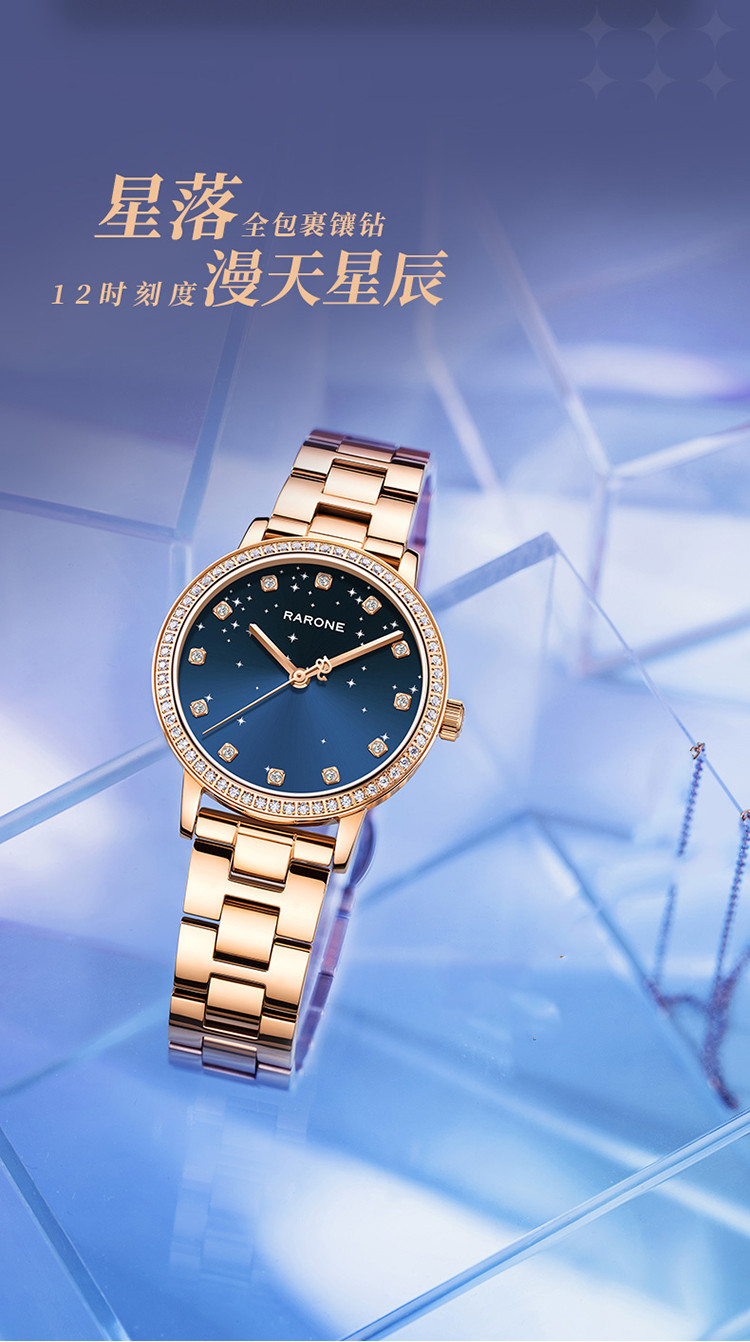 商品名称:雷诺(RARONE)手表 时尚满天星石英女士手表8600948050543(单位:块) 玫金色