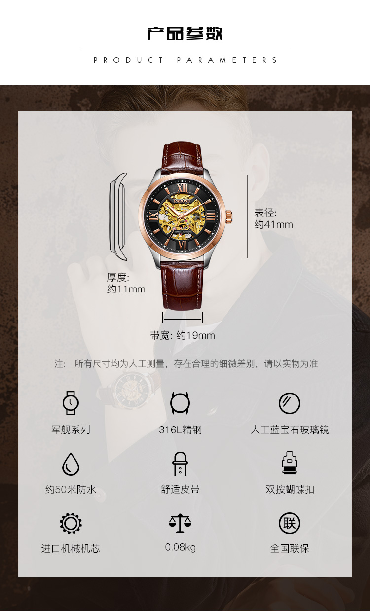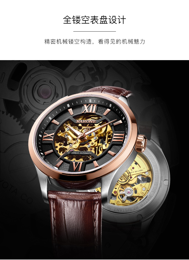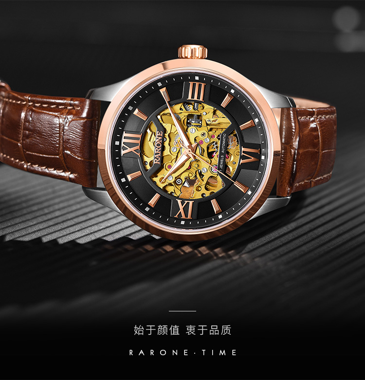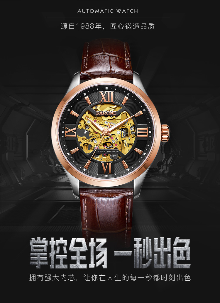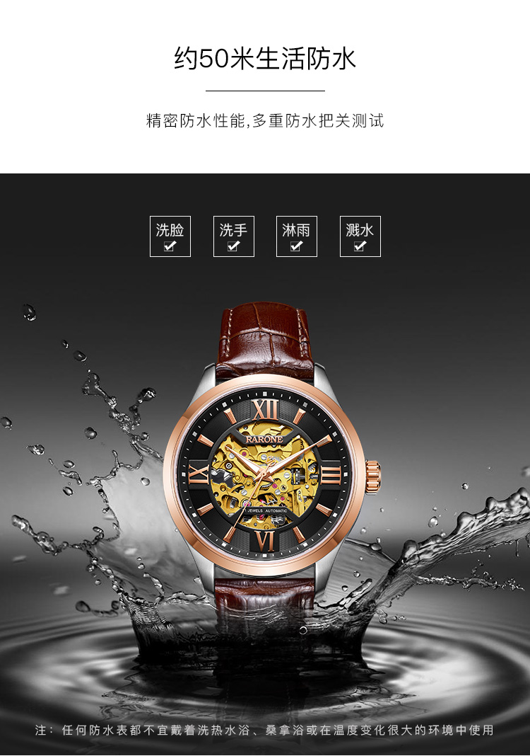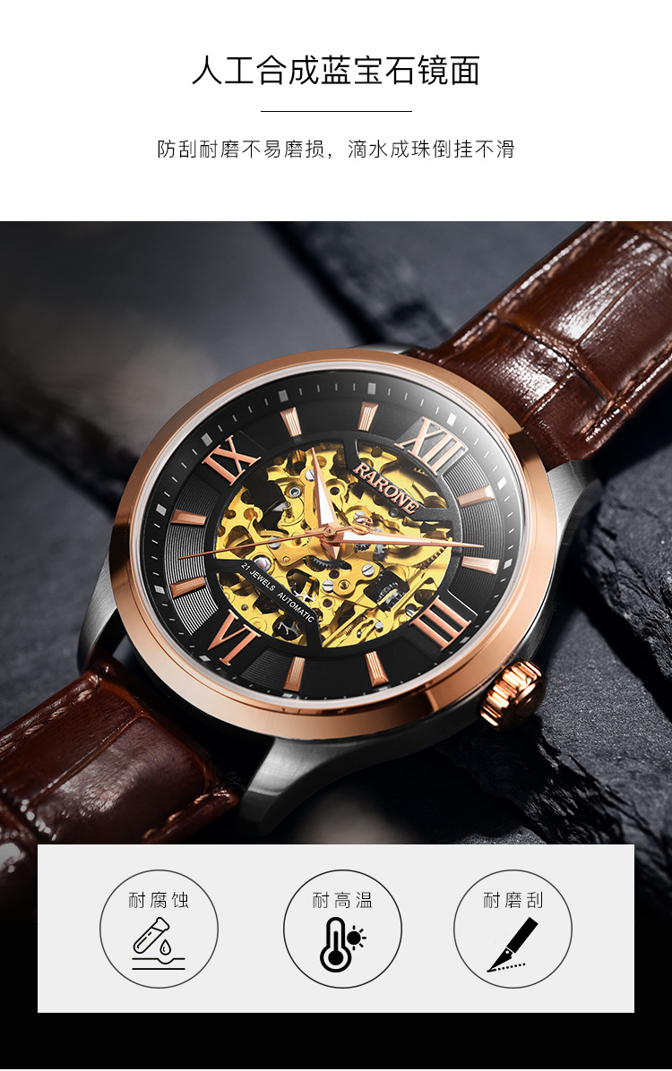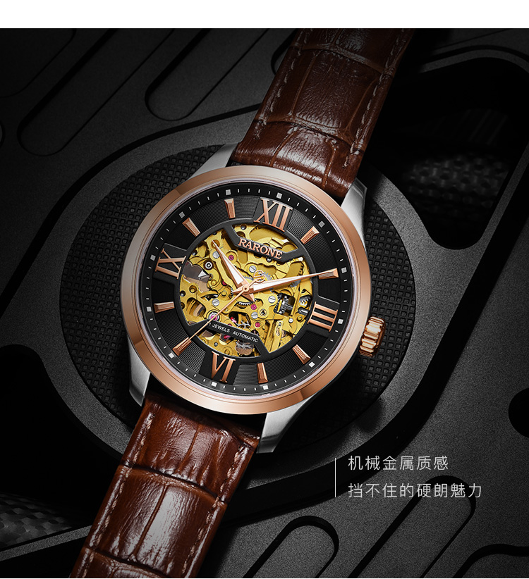商品名称:雷诺(RARONE)手表军舰系列潮流自动男士机械表8670019049907(单位:块) 黑金色