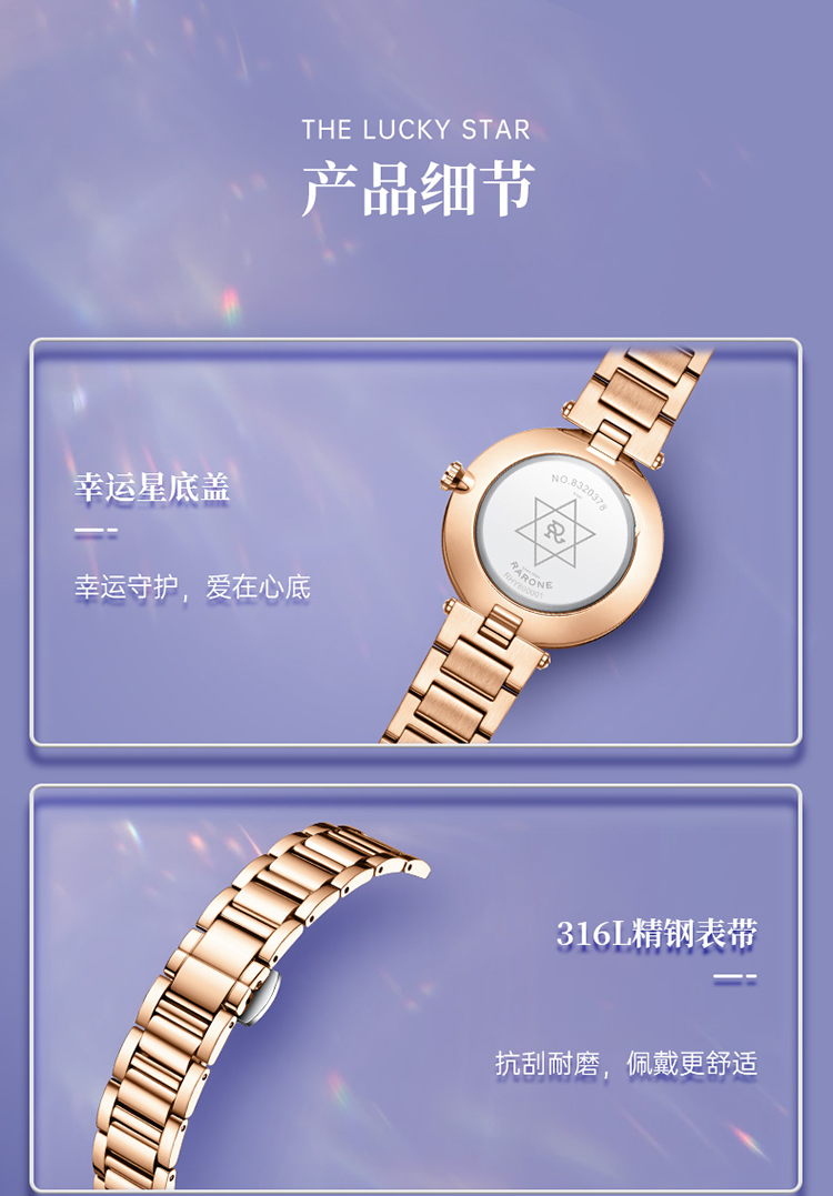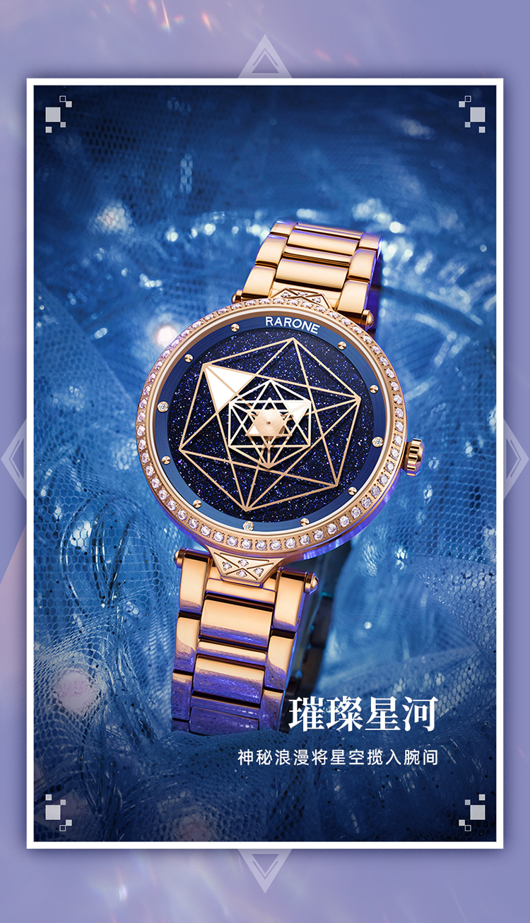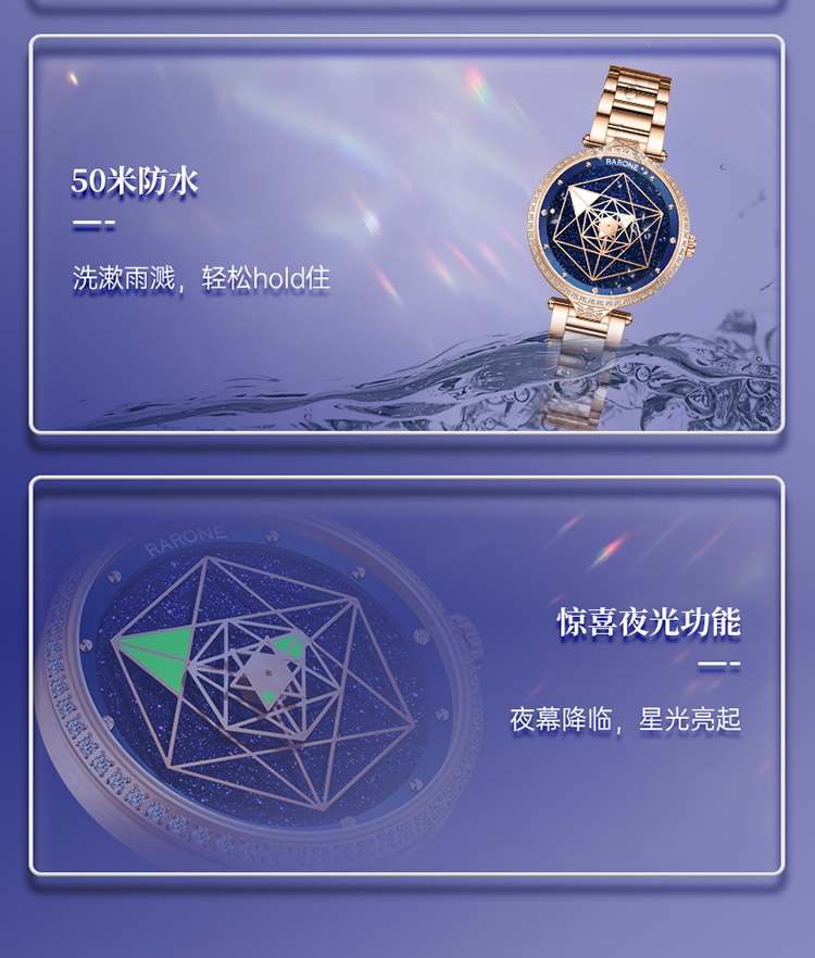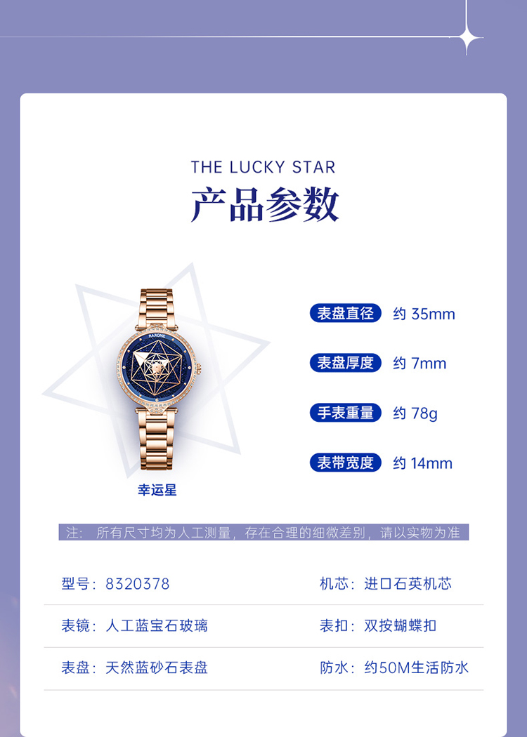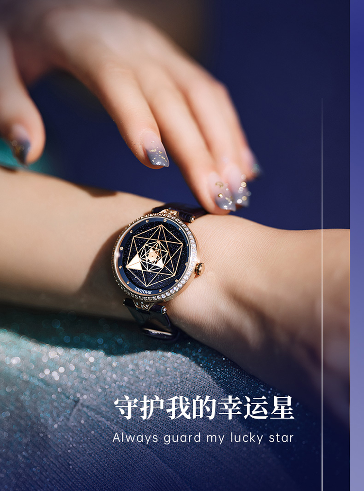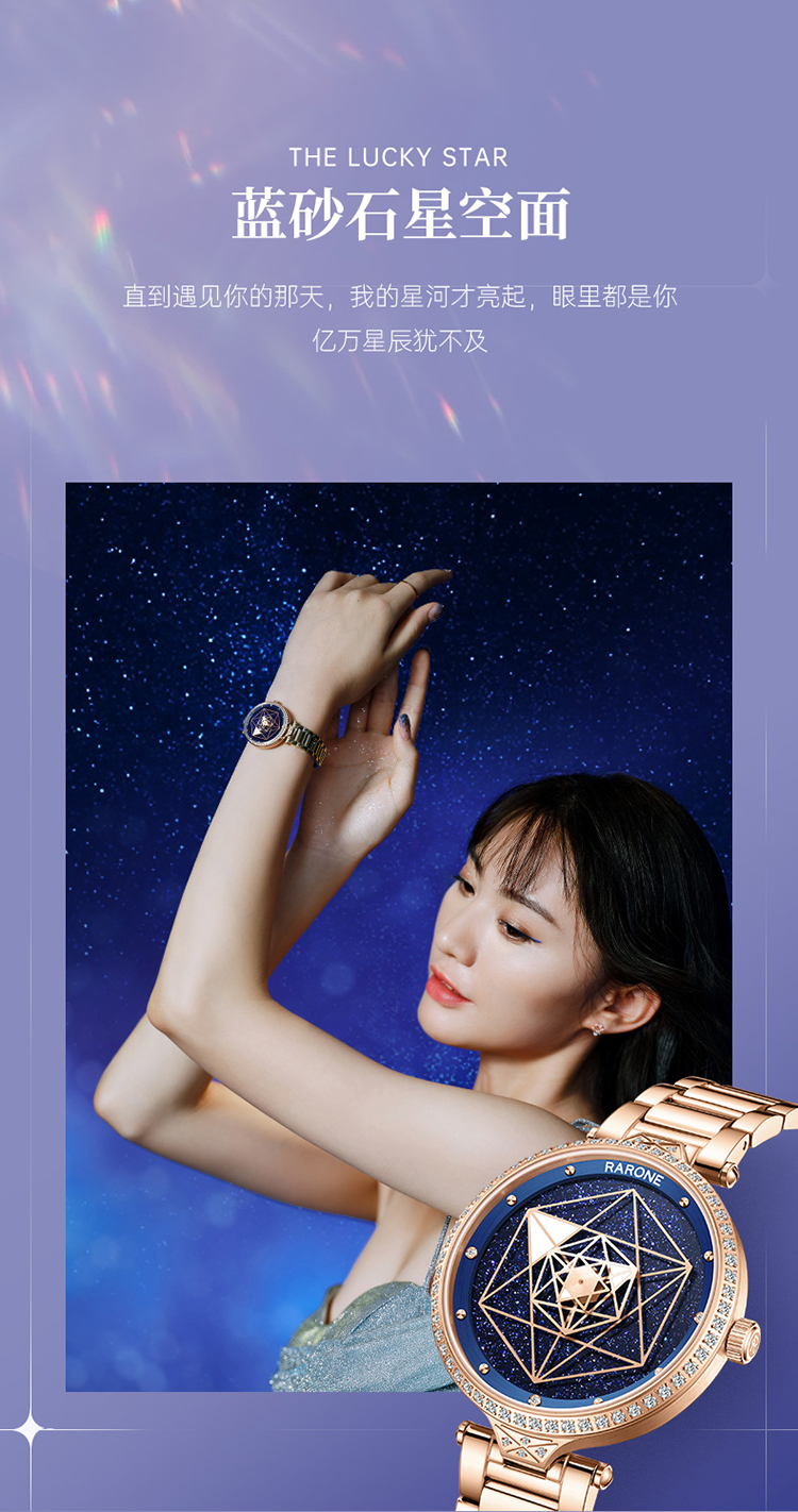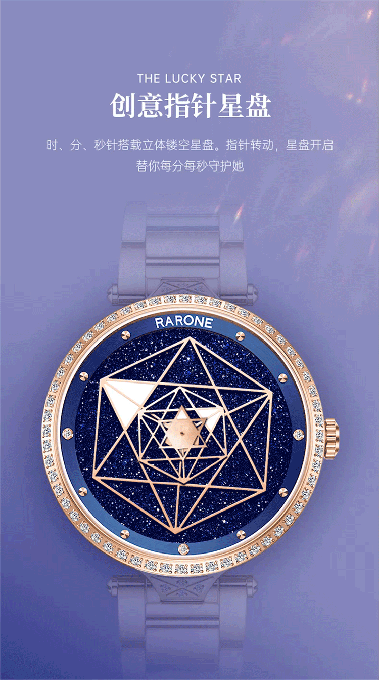 商品名称:雷诺(RARONE)手表 幸运星时尚石英女士手表64颗锆石镶嵌8320378050543(单位:块) 蓝色