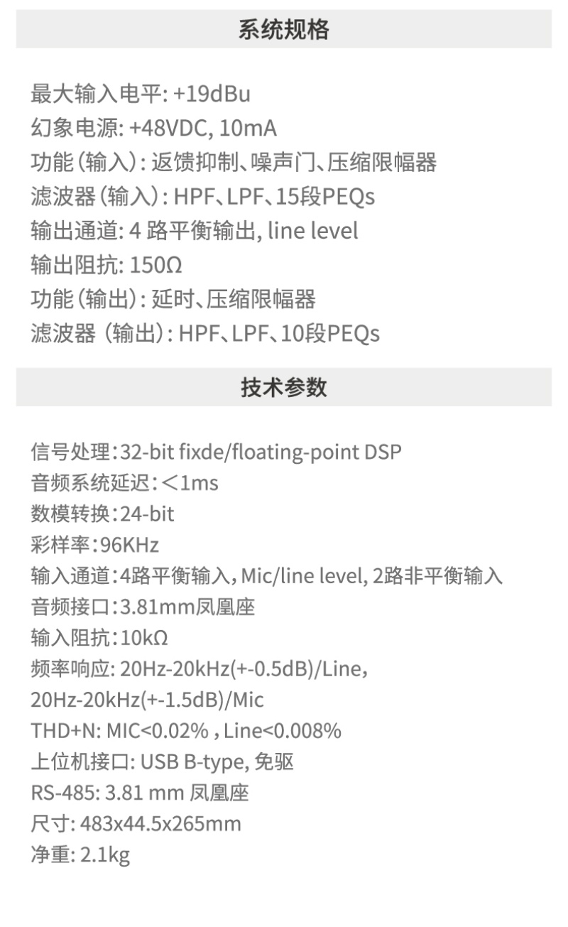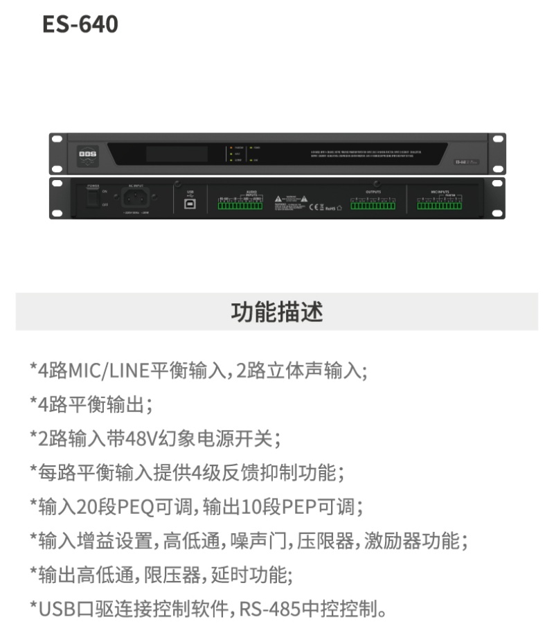 商品名称:BBS 会议室多功能报告厅学校教室6进4出专业智能数字音频处理器 ES-640 台 黑色