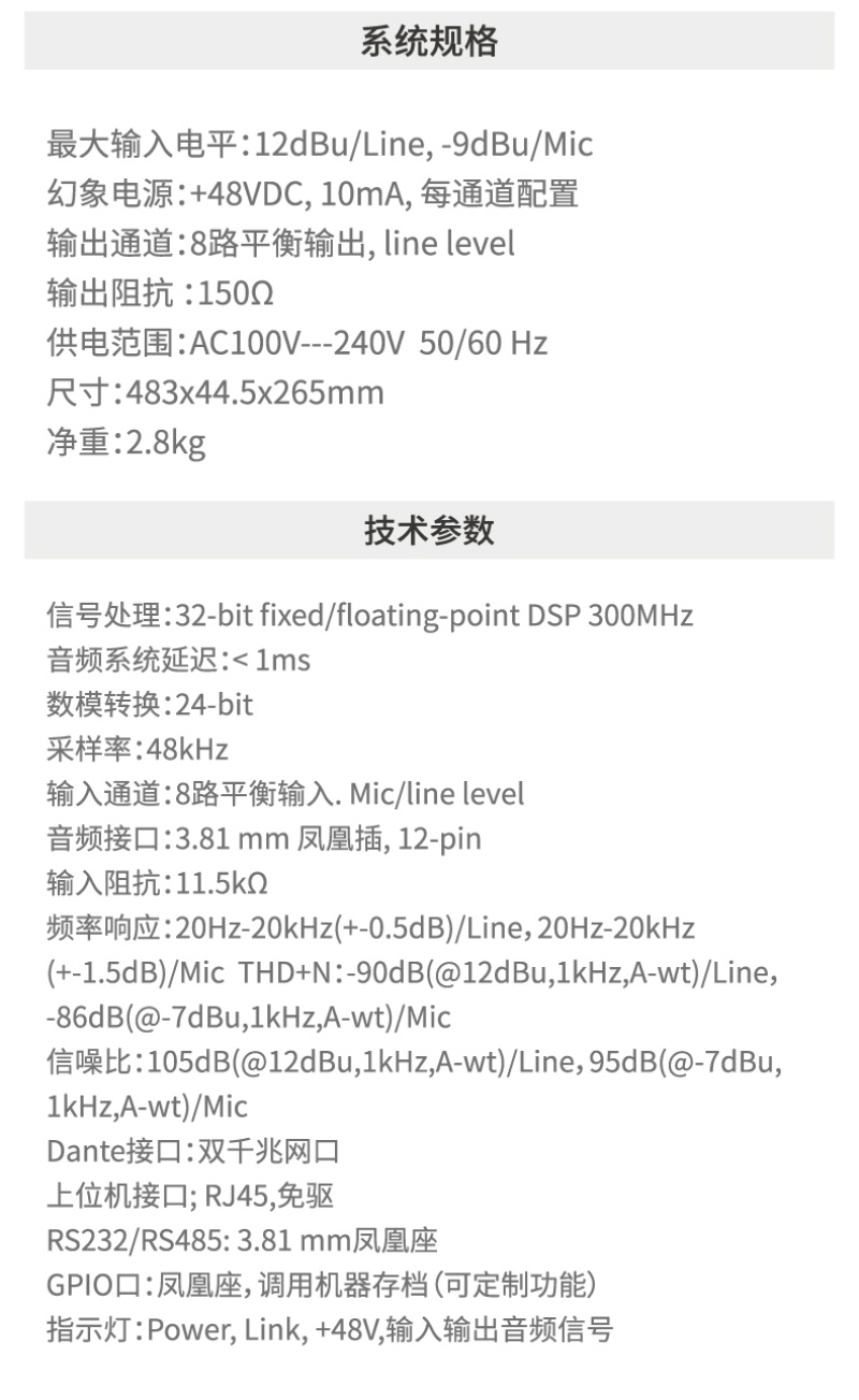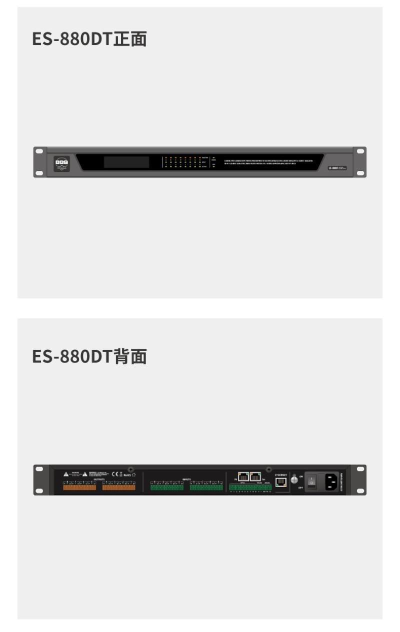 商品名称:BBS 商用会议多功能厅演讲培训8*8专业数字音频矩阵网络版四进四出Dante ES-880DT 台 黑色