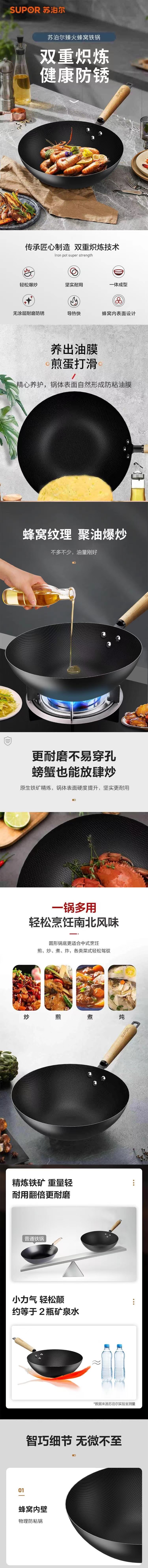 商品名称:苏泊尔(SUPOR)臻火蜂窝铁锅VC32RF01(单位:个) 黑色