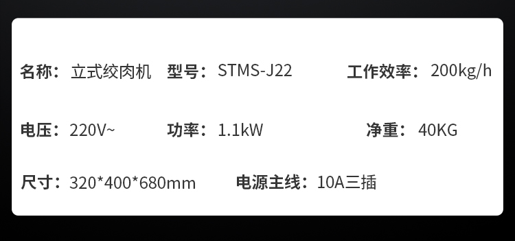 商品名称:圣托(Shentop)电动绞肉机商用 不锈钢立式刨肉碎肉机 多功能厨房食堂绞馅搅肉机 STMS-J22(单位:台)) 不锈钢色