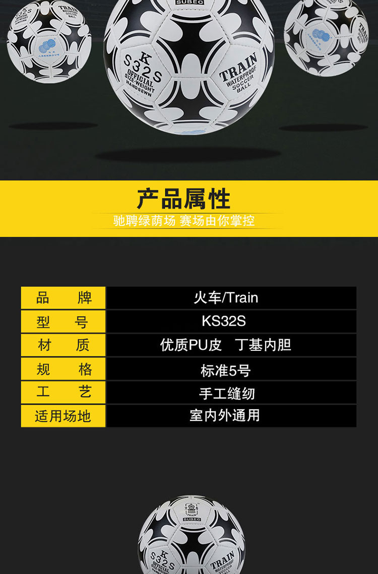 商品名称:Train火车头 手缝耐磨PU材质 标准5号 比赛足球 火车KS32S 个 黑白