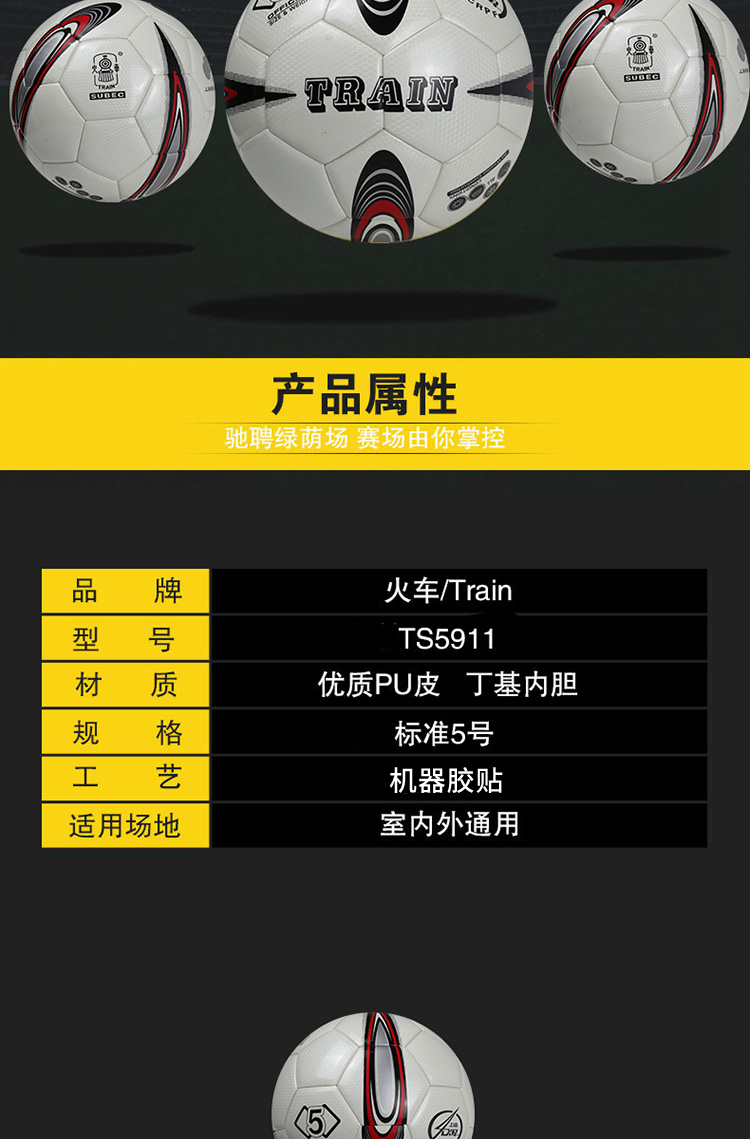 商品名称:火车 Train 火车头 TS5911 防水耐磨 PU材质 标准5号 训练足球 个 白色