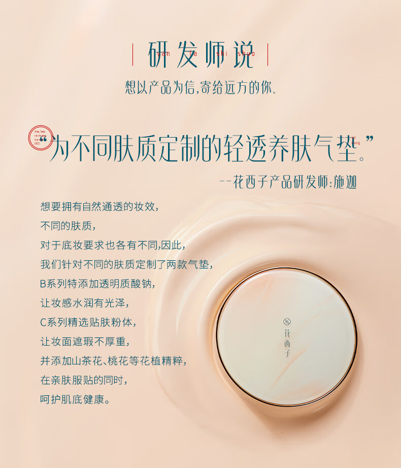 商品名称:花西子玉容睡莲气垫CC霜 (遮瑕版)C30出水芙蓉 正装 个 金色