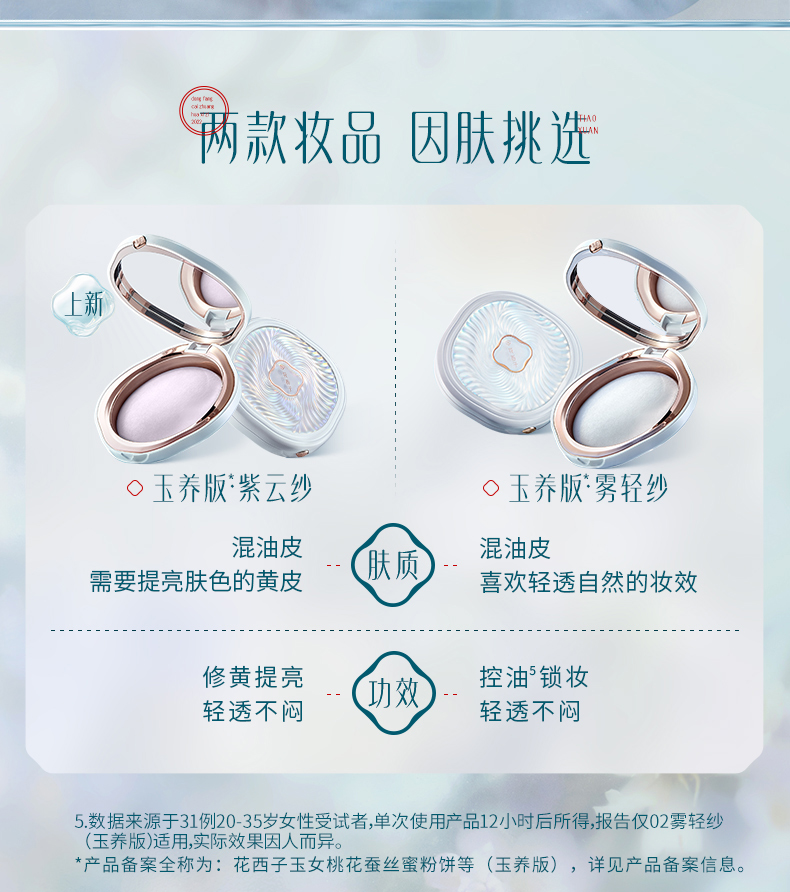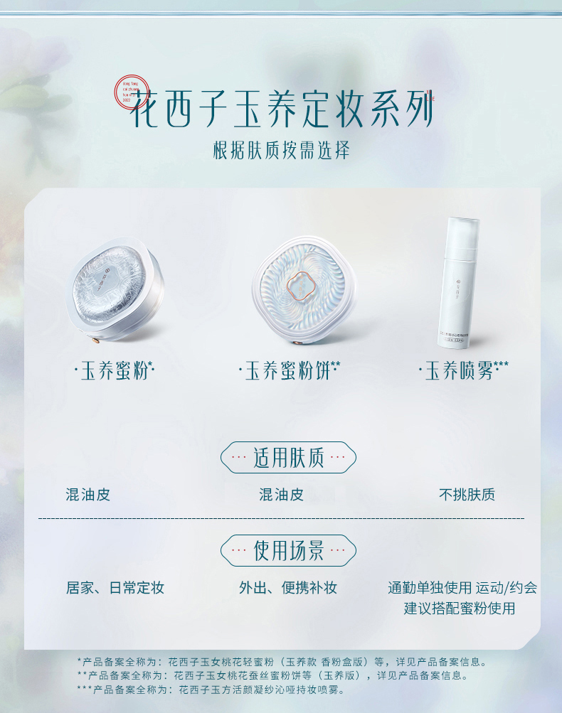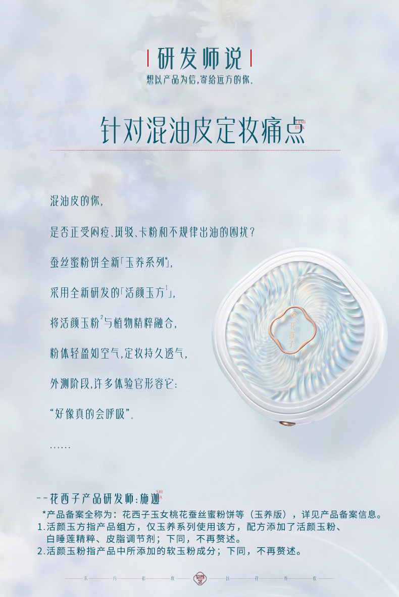 商品名称:花西子玉女桃花蚕丝蜜粉饼02雾轻纱(玉养版) 个 白色