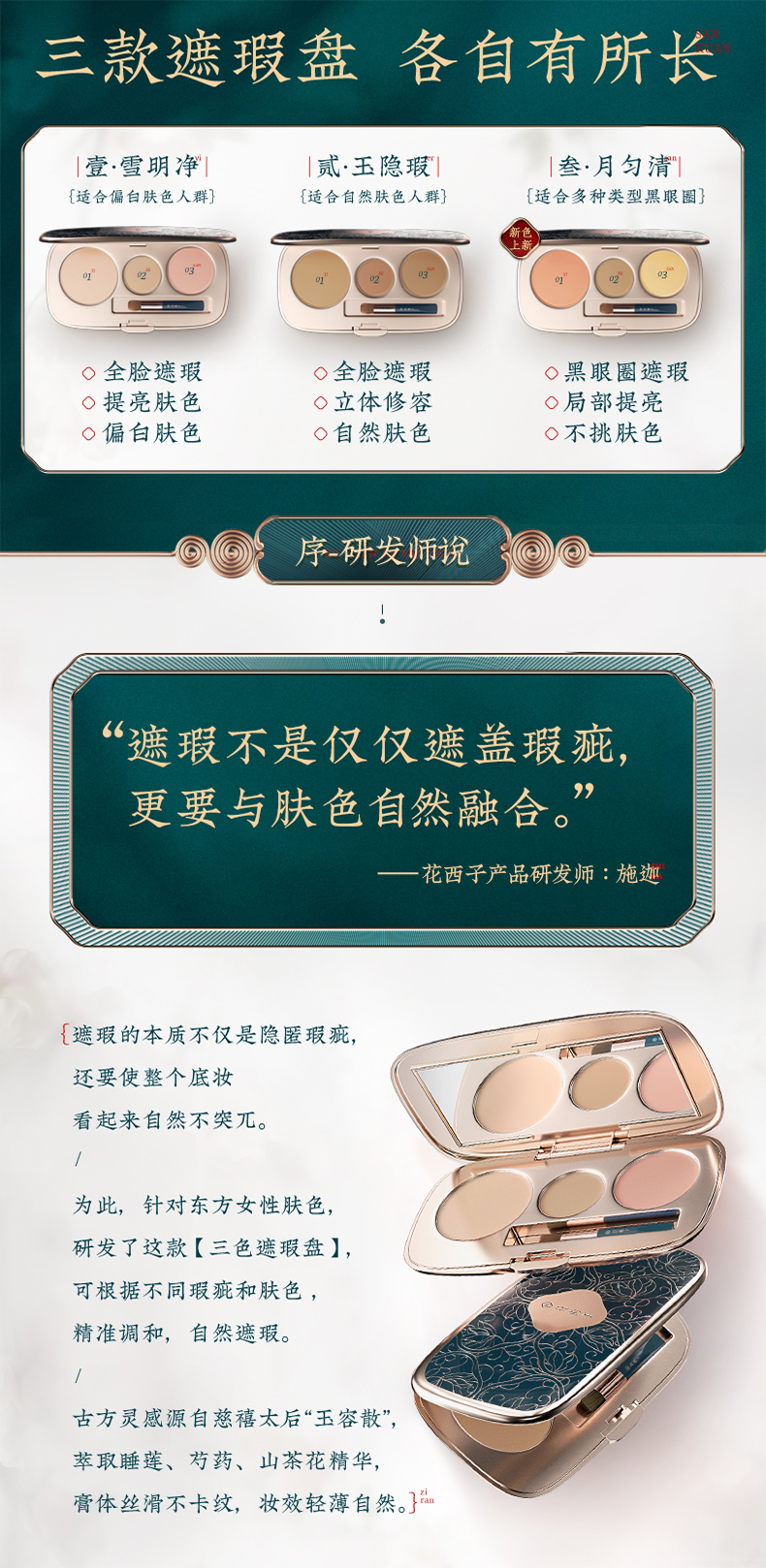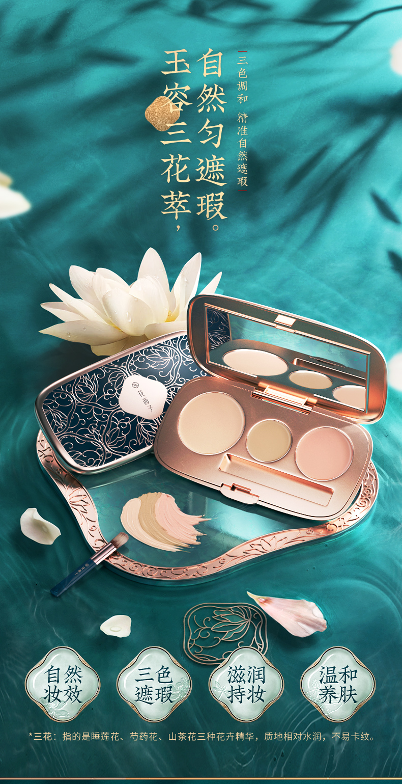 商品名称:花西子玉容三花遮瑕盘02玉隐瑕 盒 黑色