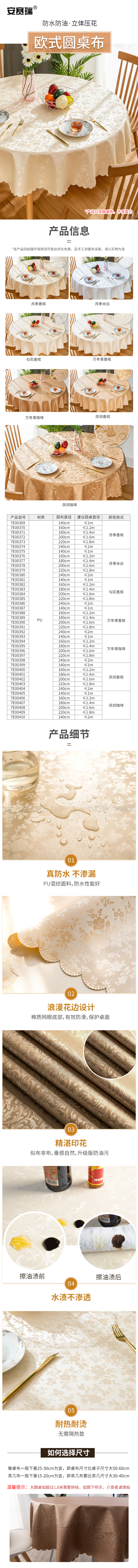 商品名称:安赛瑞 桌布 防水防油防烫免洗桌垫 酒店餐厅圆台布 直径160cm 7E00400 个 香槟色