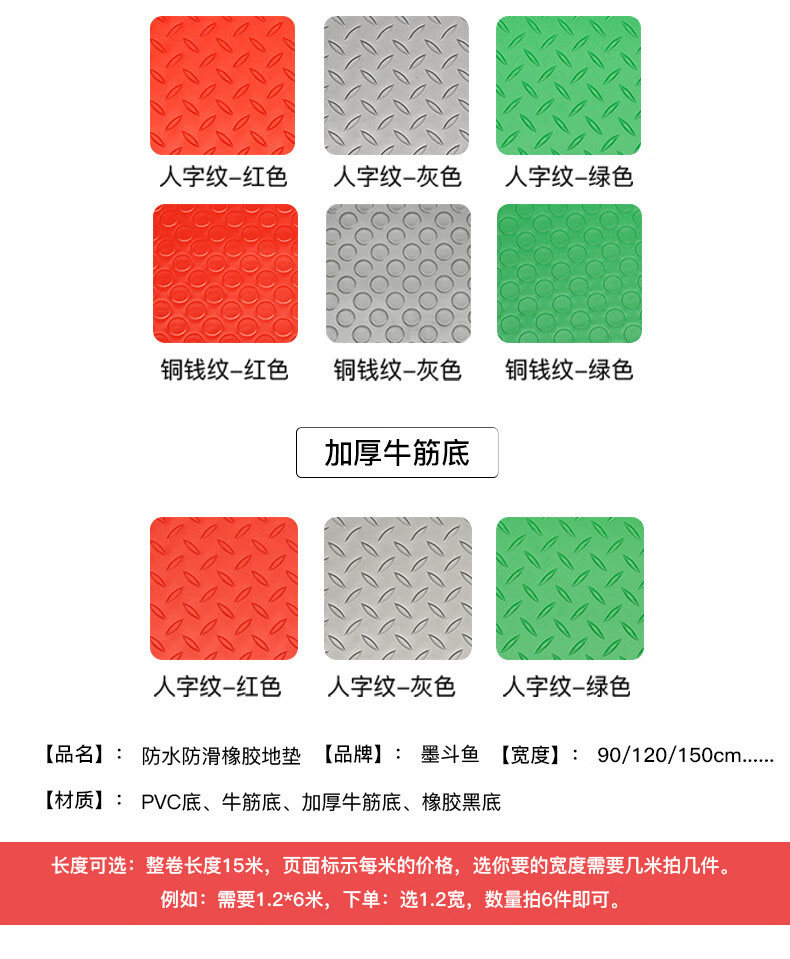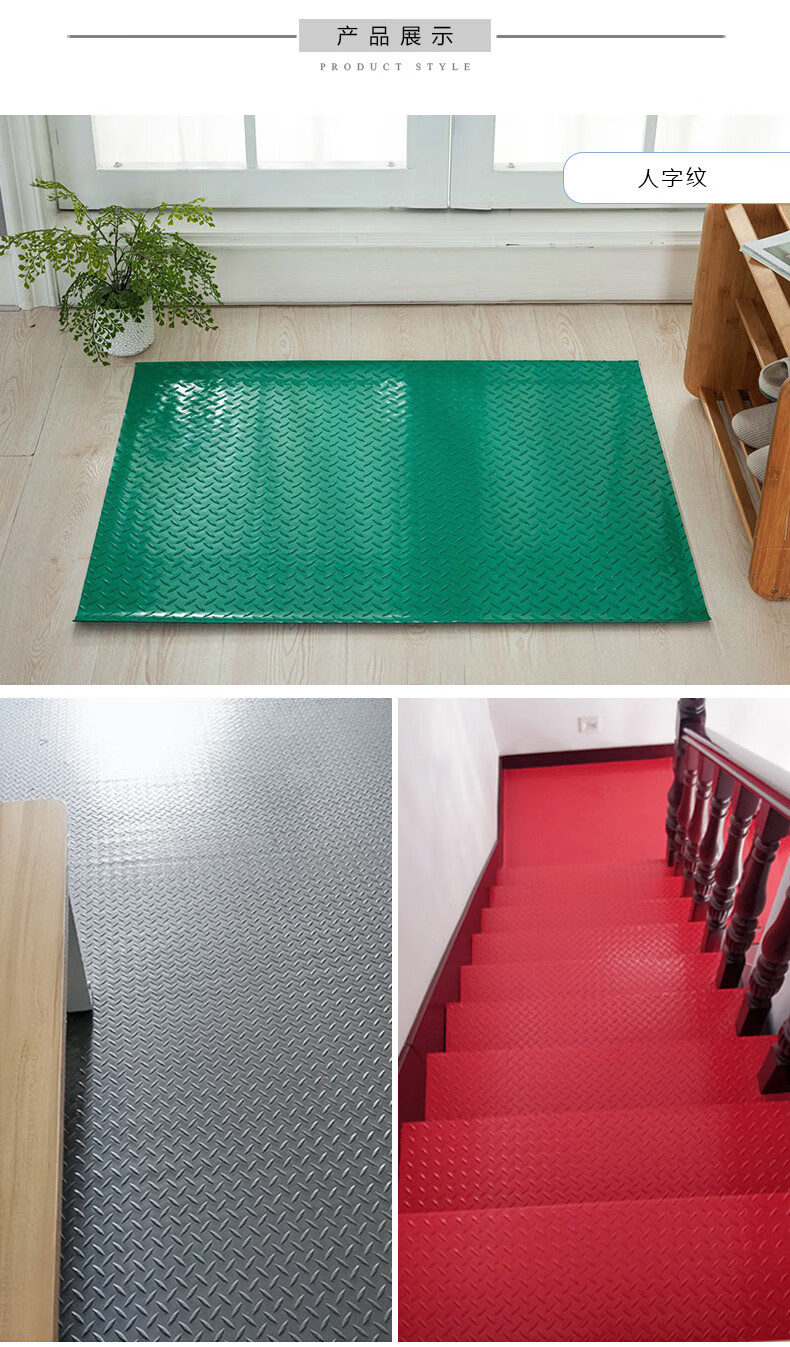 商品名称:墨斗鱼防水PVC地垫地胶塑料防滑垫楼梯厨房仓库走胶地垫毯人字纹 单位:张 0.9m宽1m长加厚牛筋底