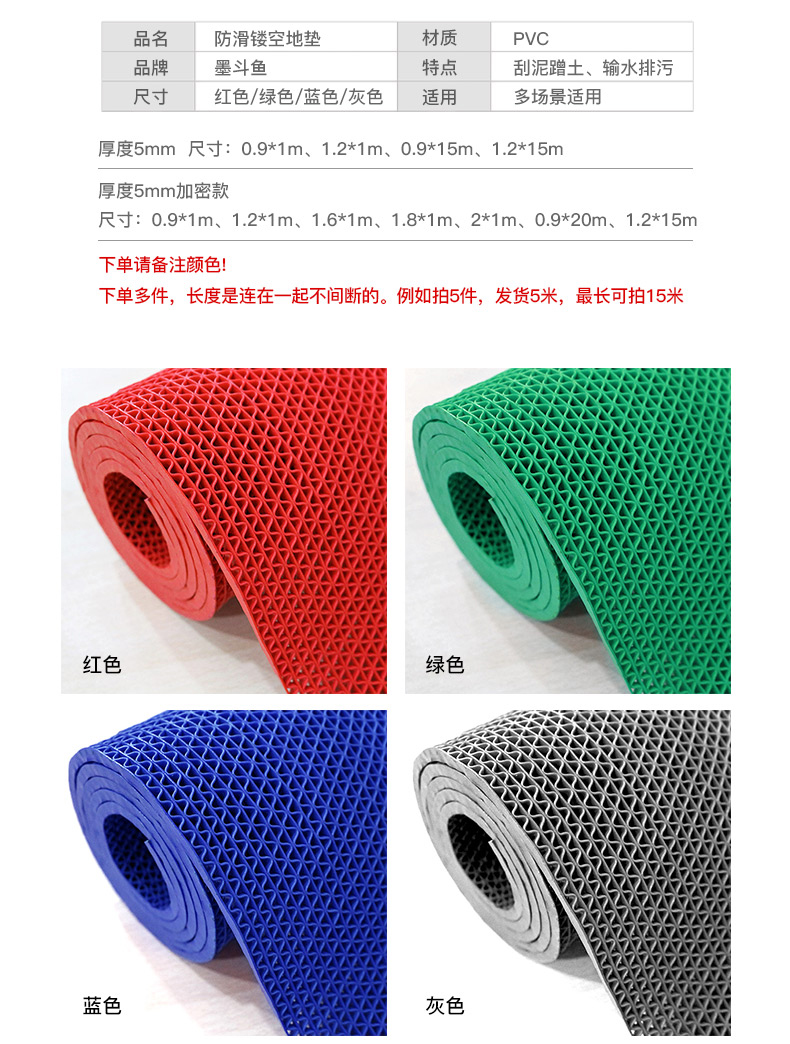 商品名称:墨斗鱼 PVC防滑垫镂空地垫防水浴室卫生间淋浴房洗手间脚垫洗澡间厕所厨房塑料地垫 单位:张 灰色