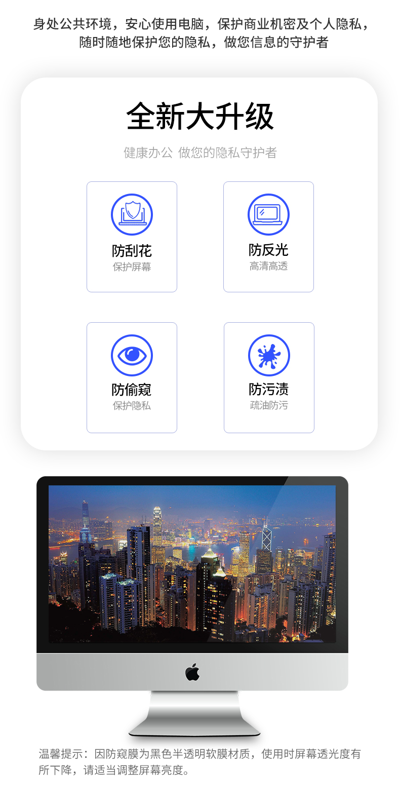商品名称:倍方 台式显示器防窥膜 经典款电脑屏幕隐私保护膜防反光/炫目膜防窥屏电脑保护膜防窥屏 单位:张 经典款18.5英寸(16:9)