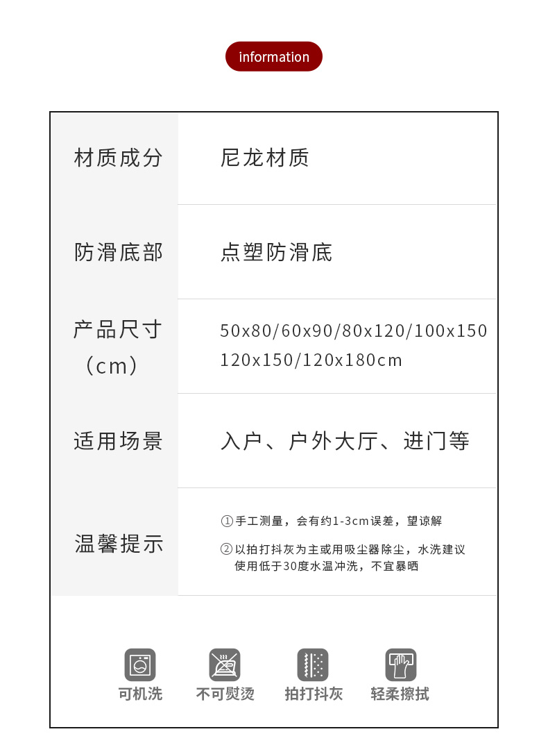 商品名称:大江地垫地毯尼龙防滑垫 福气满堂50*80cm