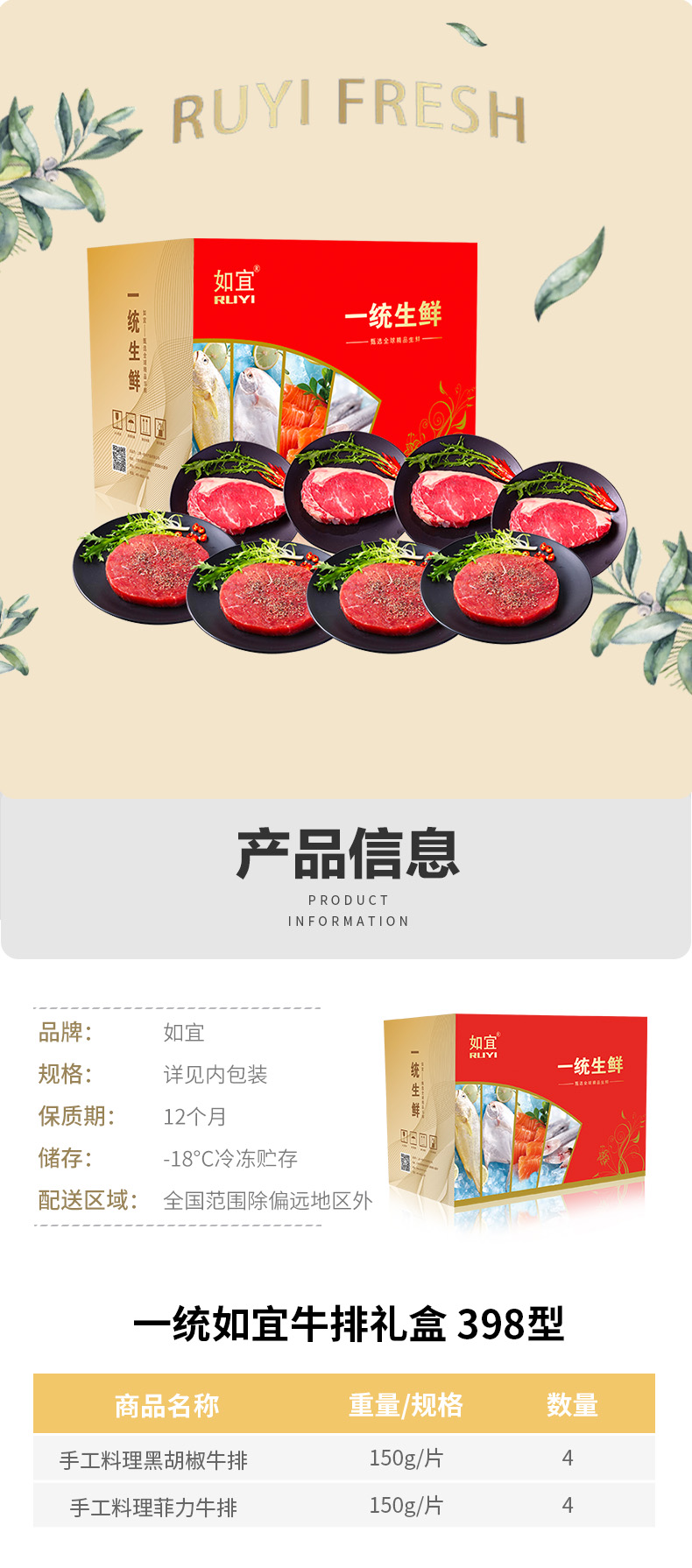 商品名称:如宜2024一统生鲜精品牛排礼盒398型 宝石蓝