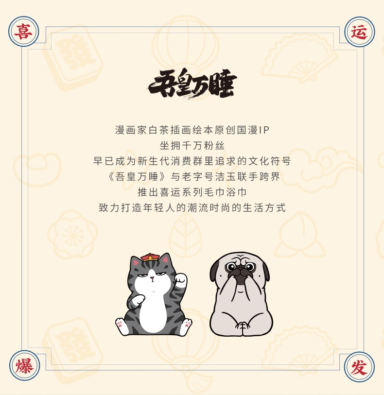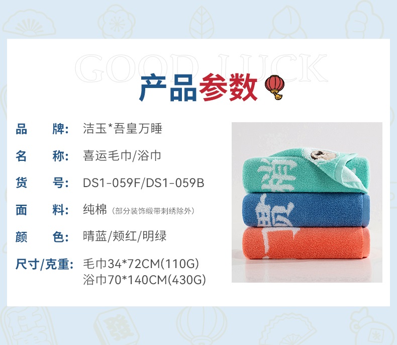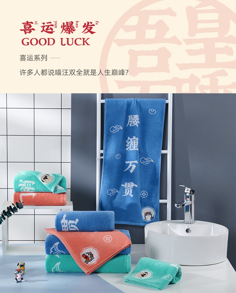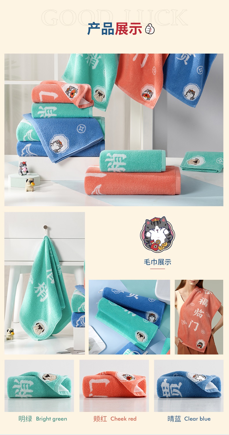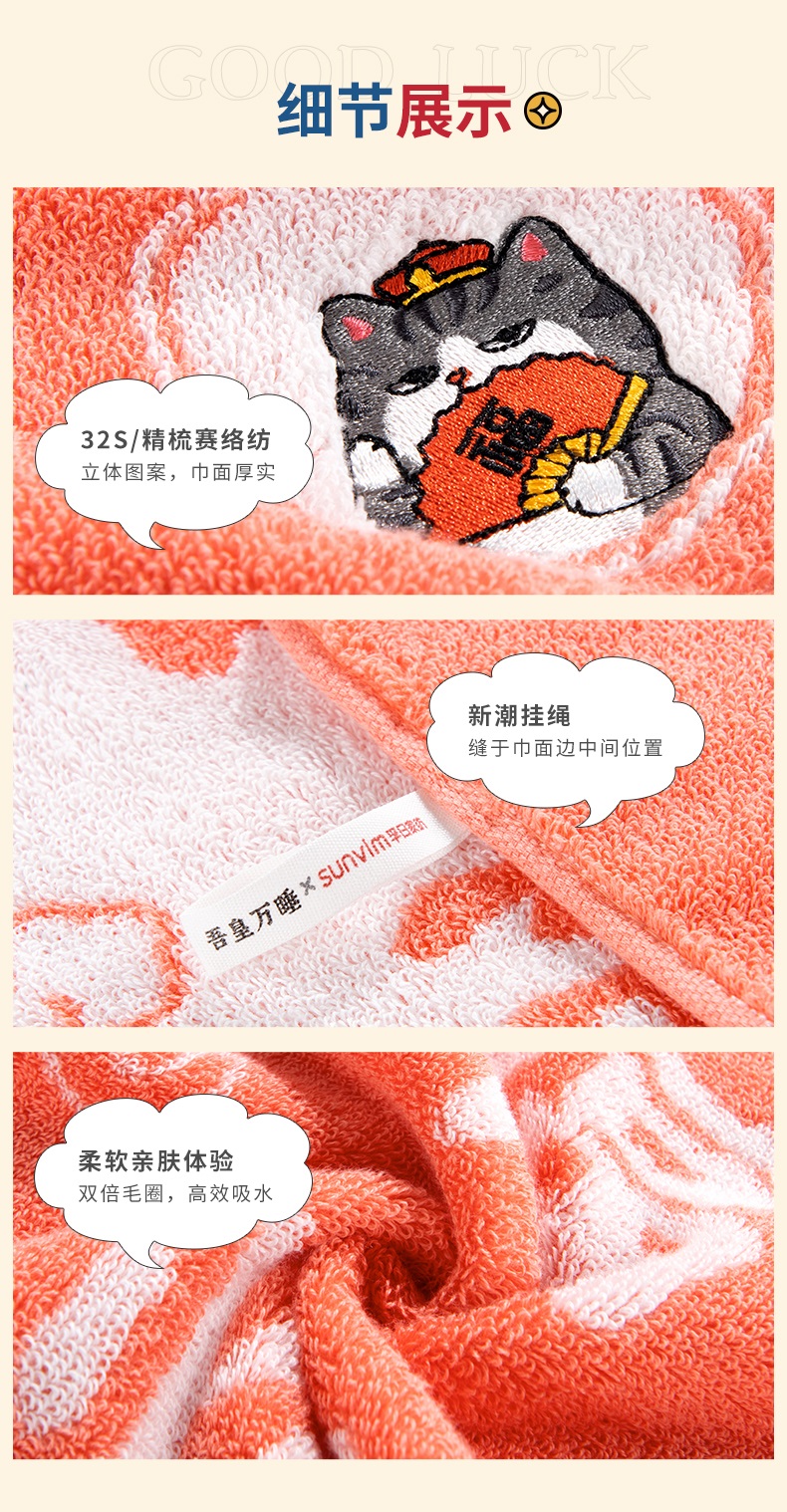 商品名称:孚日洁玉 纯棉毛巾 吾皇猫联名款AAA级抑菌喜运加厚洗脸巾单条装 DS1-059F110g/条 红色