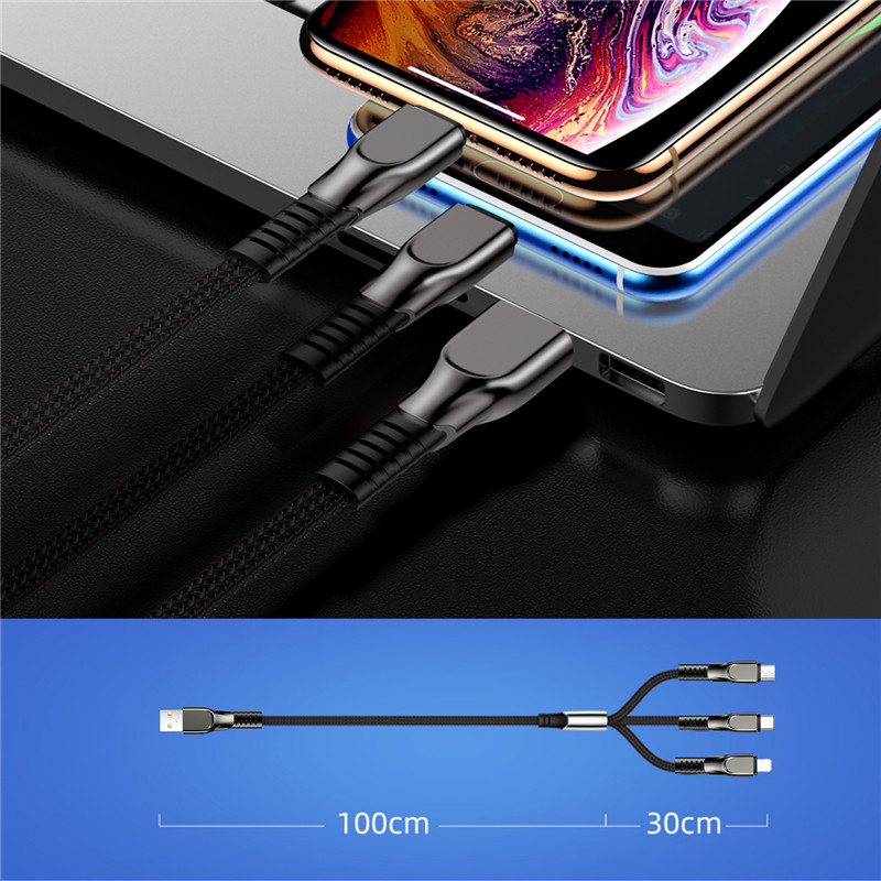 商品名称:机乐堂 S-1335K4 一拖三数据线 1.3M(Lightning+Type-C+micro)(单位:个) 红色