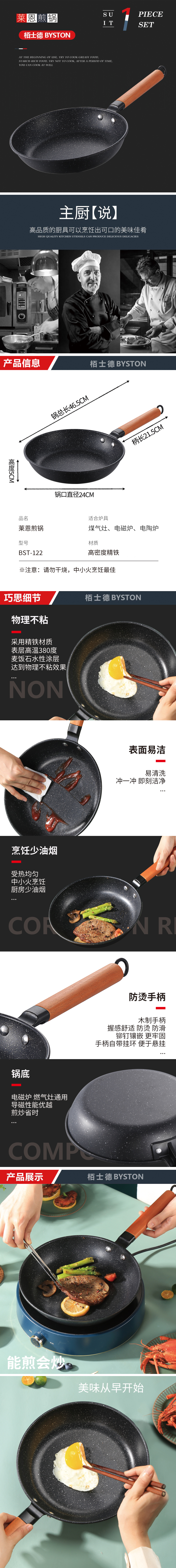 商品名称:栢士德BYSTON 莱恩煎锅 BST-122 24CM(单位:个) 曜石黑