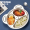 采用食品级304不锈钢材质,设计新颖,卡通造型,无焊接一体成型,容易清洗;加深格槽设计,食物不易滑出;大容量分格分装,不易串味,美味享更多 。