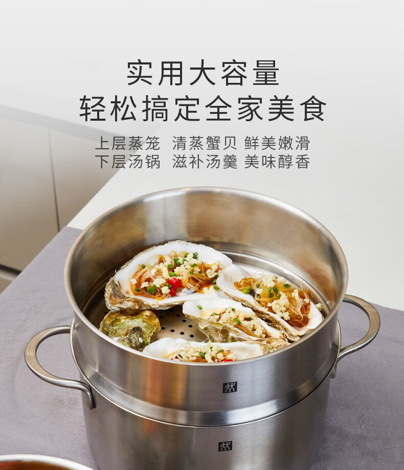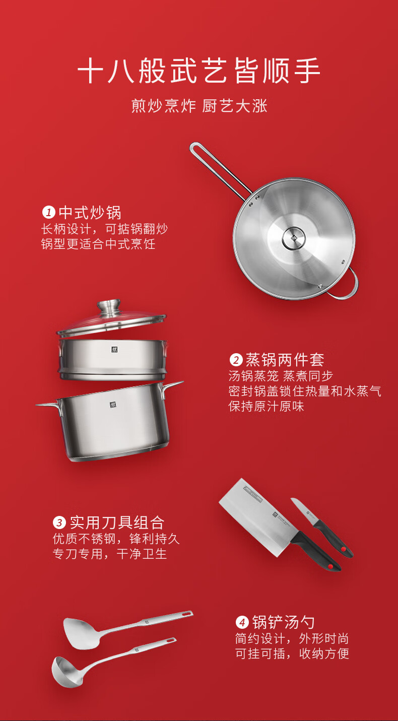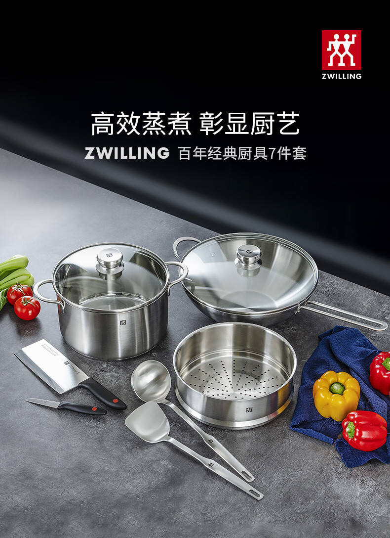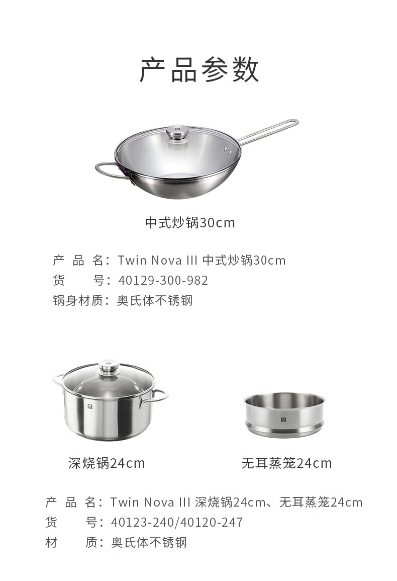 商品名称:双立人锅具套装不锈钢炒锅汤锅蒸笼切菜刀水果刀锅铲汤勺 厨具百年经典40120-032-922 不锈钢色